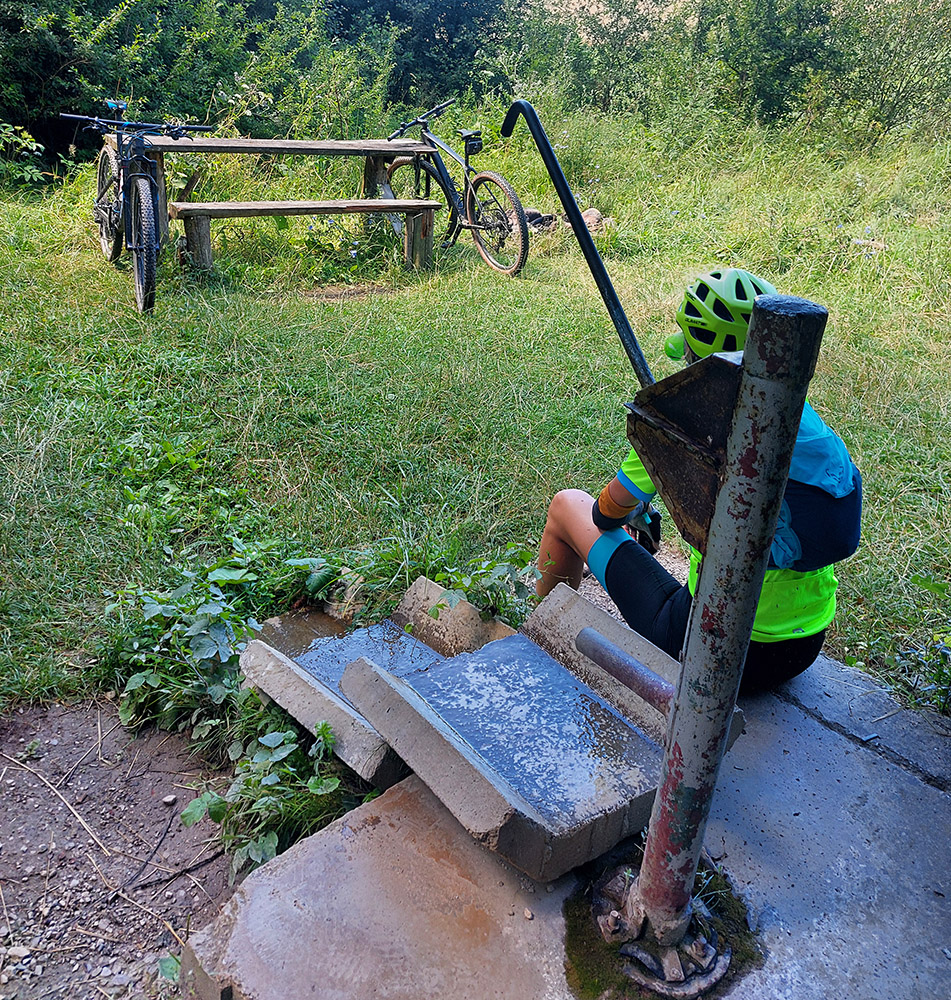 Ešte šotolina pomedzi polia, trochu asfaltu na Dubové a už sme ochutnávali, priamo pri Turci, druhú minerálku – trochu sýtejšiu, ale stále výbornú na pitie, nie ako ten ekrazit, čo ledva čurká vyššie nad Budišom a ľudia naň stoja v radoch.
