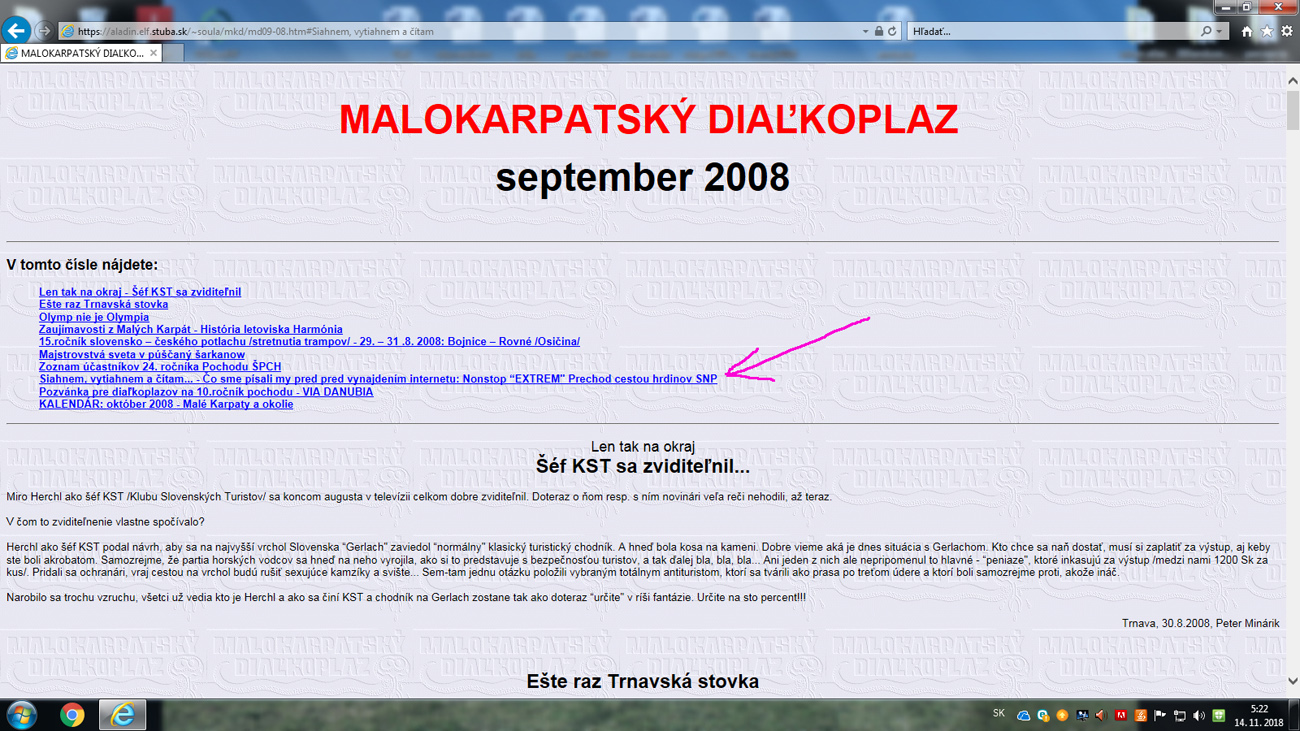 (V dobe internetu je Malokarpatský diaľkoplaz (novšie čísla) už aj v elektronickej verzii a Rudov report z Cesty hrdinov SNP je v septembrovom čísle z r. 2008 v rubrike "Stiahnem, vytiahnem a čítam" tu: https://aladin.elf.stuba.sk/~soula/mkd/md09-08.htm#Stiahnem, vytiahnem a čítam...)
