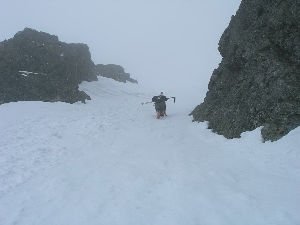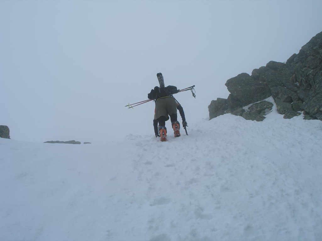 Tohtoročná jar s vynikajúcimi snehovými podmienkami doslova vyháňa do hôr. Nový výstroj znásobuje moje nadšenie a po pár sychravých dňoch využívame hneď ten prvý, ktorý sľubuje lepšie počasie. Cestou na Popradské sa nám podarí chytiť stop a o to viac si tam vychutnávame kávičku pri debate, kam ďalej. Prebieha tu kurz záchranárov, dnes sa teda budeme cítiť bezpečne. (Pri tej príležitosti si spomínam na nezaplatený šek z Alpenvereinu :)