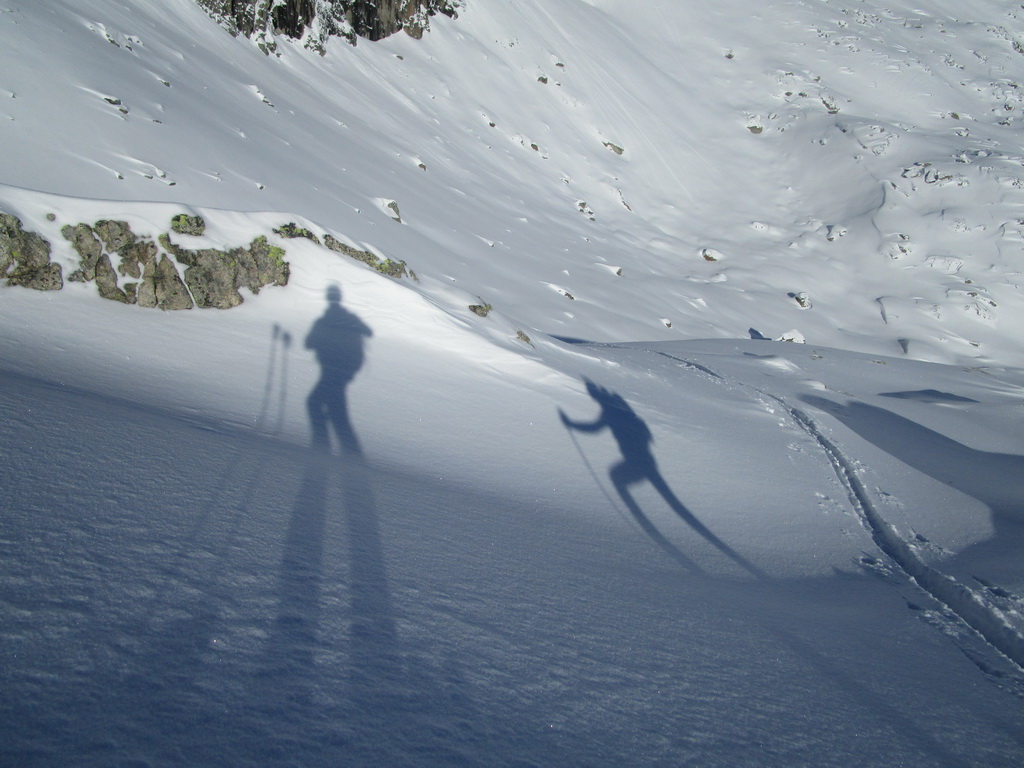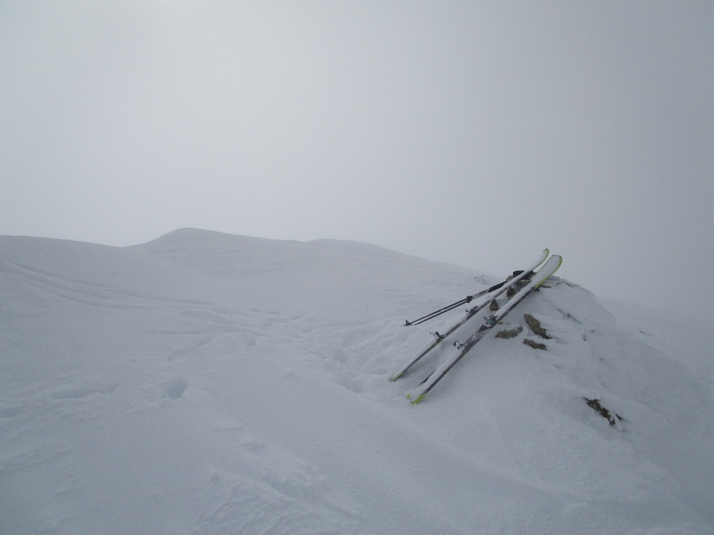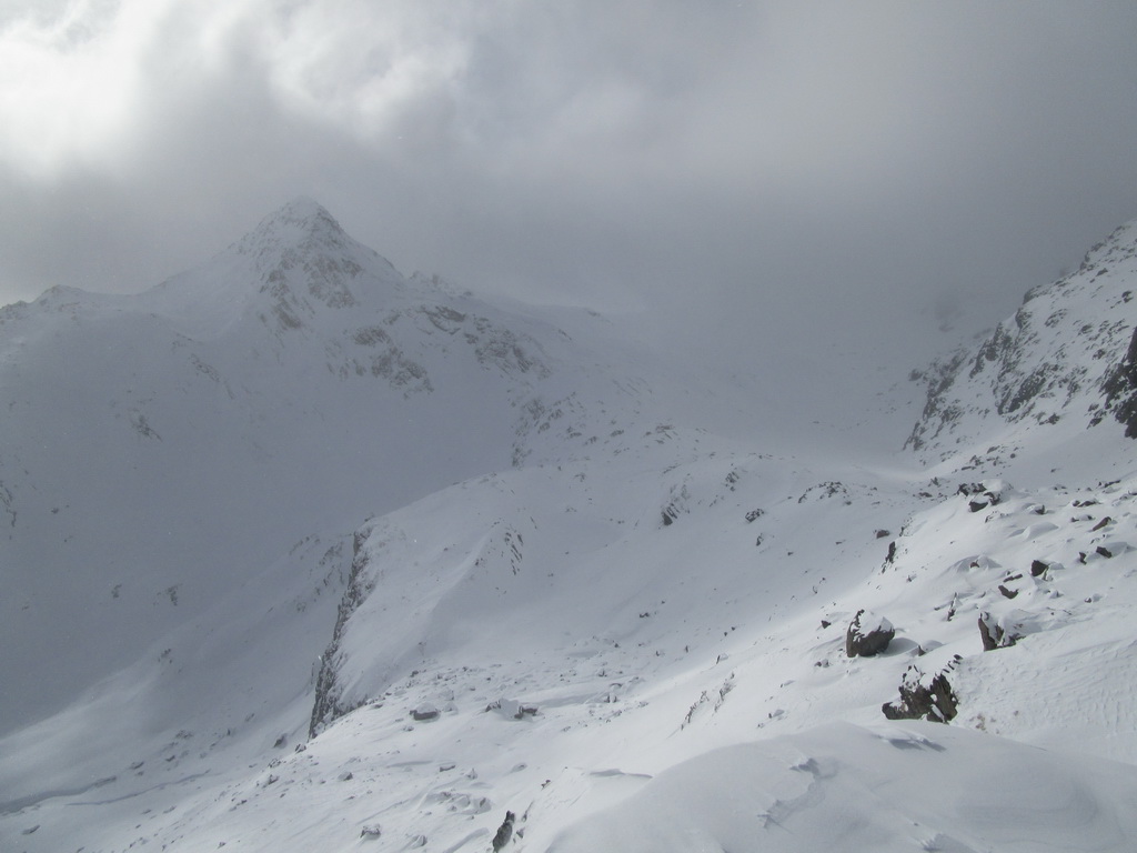 Odtiaľto stúpame po hrebienku, kde sme v bezpeží pred lavínami a pomedzi vysoké skalné mužíky sa mierne traverzujúc vľavo dostaneme ku záverečnému výšvihu. Na lyžiach sa dá vystúpiť až na vrchol pýšiaci sa úžasnými výhľadmi. Návrat tou istou trasou.