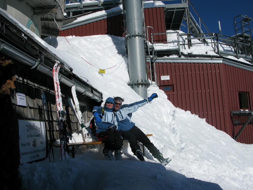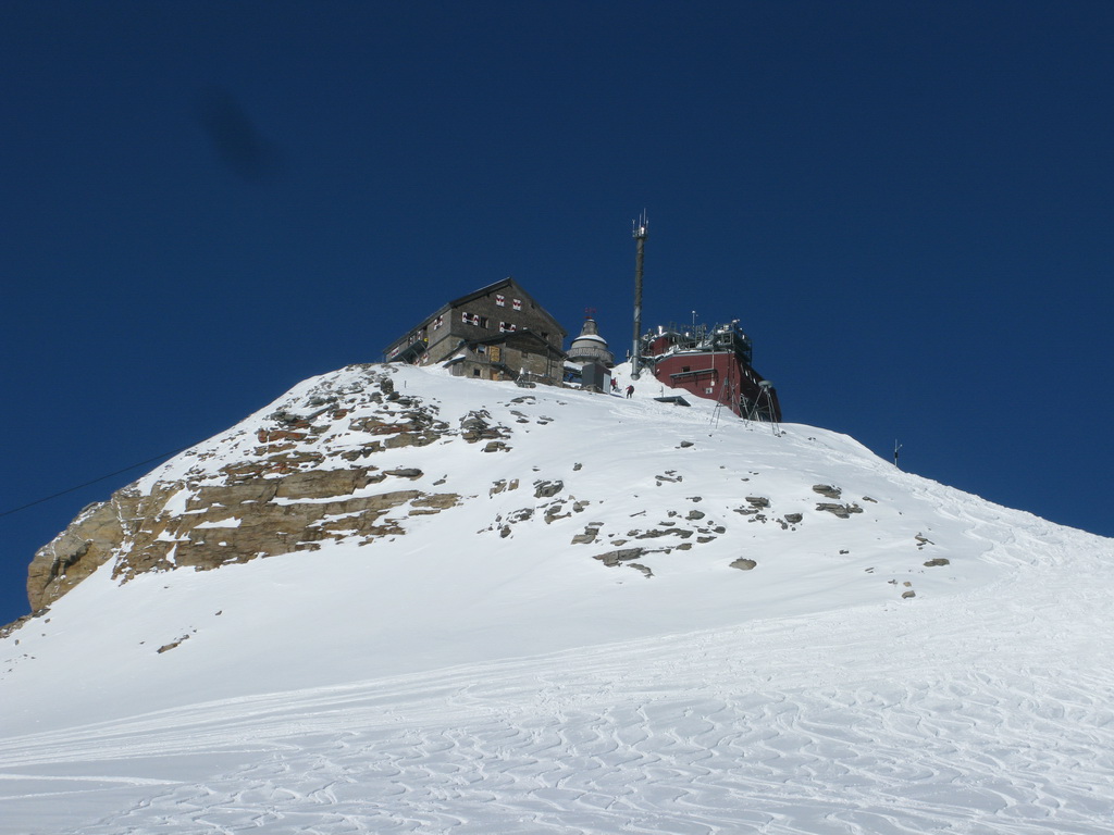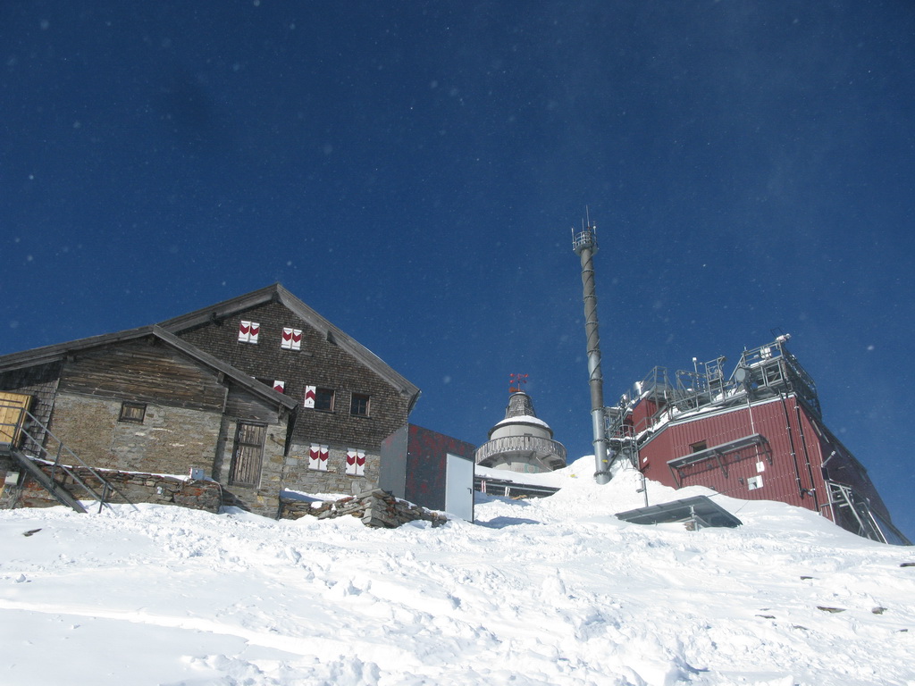 Počasie je krásne a vyzerá byť aj stabilné. Na vrchole je chata a observatórium. Vedie sem zásobovacia nákladná lanovka. Na chate je len jedna dvojka, chystajúca sa práve lyžovať dole. Hovoria nejakým balkánskym jazykom :))