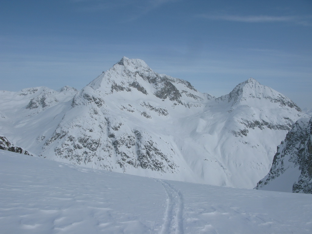 Na tretí pokus o tento kopec sa za dobrých podmienok zastavujem až na vrchole. Záver už idem peši. Z vrcholu sú nádherné výhľady na všetky strany. Po návrate k lyžiam nasleduje tisíc výškových metrov krásneho zjazdu v prašane.