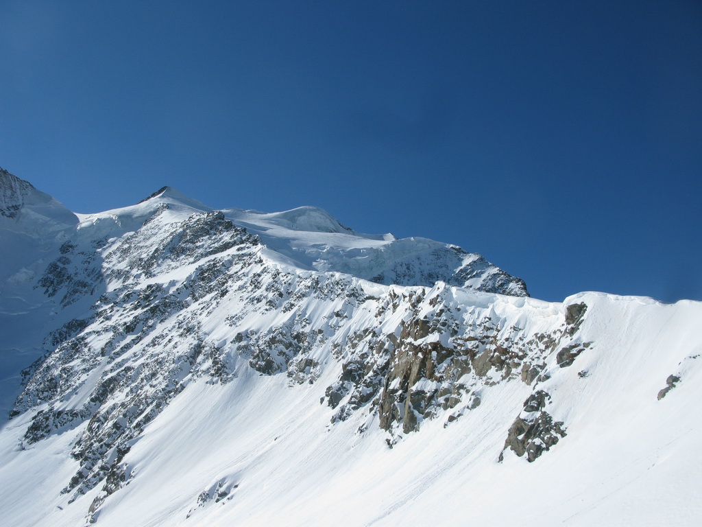"Tento pyšný a najvyšší vrchol Graubundenu a zároveň jediná štvortisícovka býva navštevovaná aj v zime skúsenými skialpinistami. Popri dobrých snehových podmienkach a stabilnom počasí je potrebné na túto túru mať aj horolezecké skúsenosti, výbornú kondíciu a adekvátny výstroj. Táto túra je dlhá, prípadné prenocovanie na chate Marco e Rosa (zatvorená, winterraum zle vybavený) nie je bez rizika. Pri náhlom zhoršení počasia sa môže chata premeniť na pascu, v zlom počasí sa dole nedostanete. Prekonanie ľadovcových zlomov v takzvanom Buuchu je veľmi ťažké, v žiadnom prípade nepodceňujte možný pád kamenia a ľadu v tejto oblasti. Relatívne bezpečný výstup cez Fortezzu a terasu Bellavisty je možný, ale s veľkou časovou stratou..."