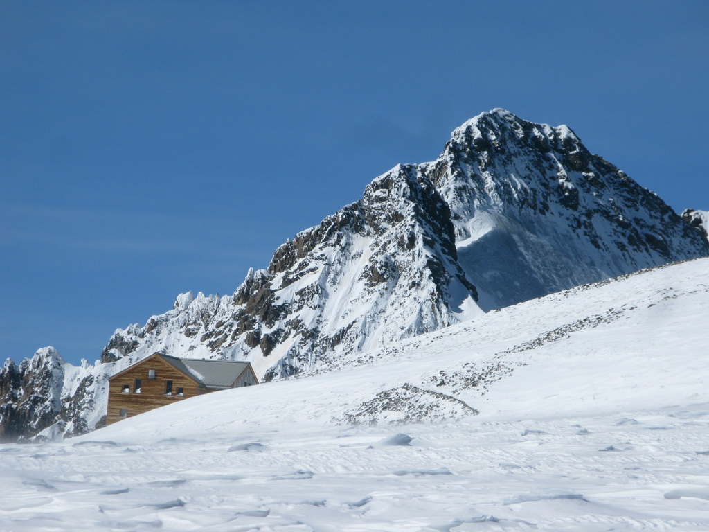 Po návrate z vrcholu do skidepa sa rozhodujem čo ďalej. Rovno dole sa nechystám. Aj keď väčšina by sa uspokojila s pekným vrcholom, ja mám na dnes ešte ďalšie plány. Vzhľadom na pokročilý čas aj únavu a aj nepriaznivé snehové podmienky vo výškach ich ale musím zredukovať.
