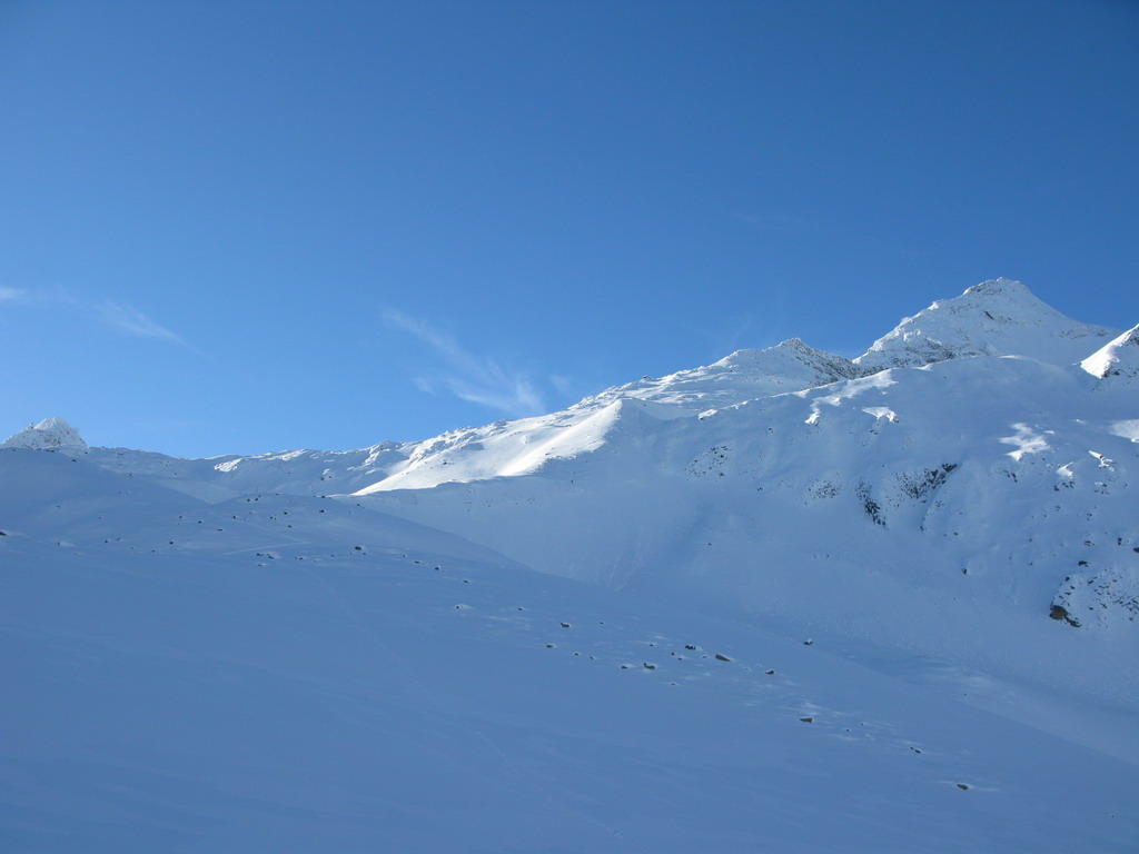 O 11hod. sme teda vyrazili na prieskum terénu. Podľa stôp a podľa toho, čo povedal chatár sa dnes pár ľuďom podarilo v peknom počasí vystúpiť aj na vrchol Hoher Sonnblick. My sme sa otočili, tak na polceste s cennými informáciami o nástupe...