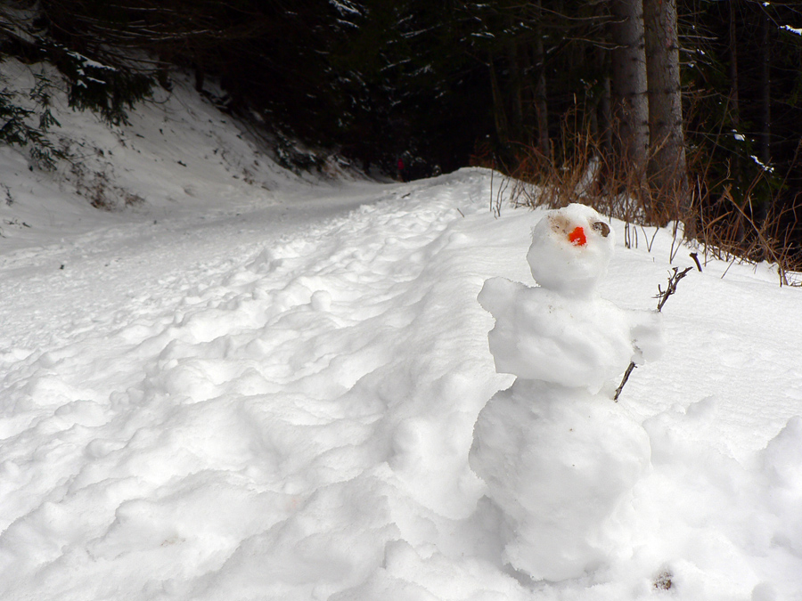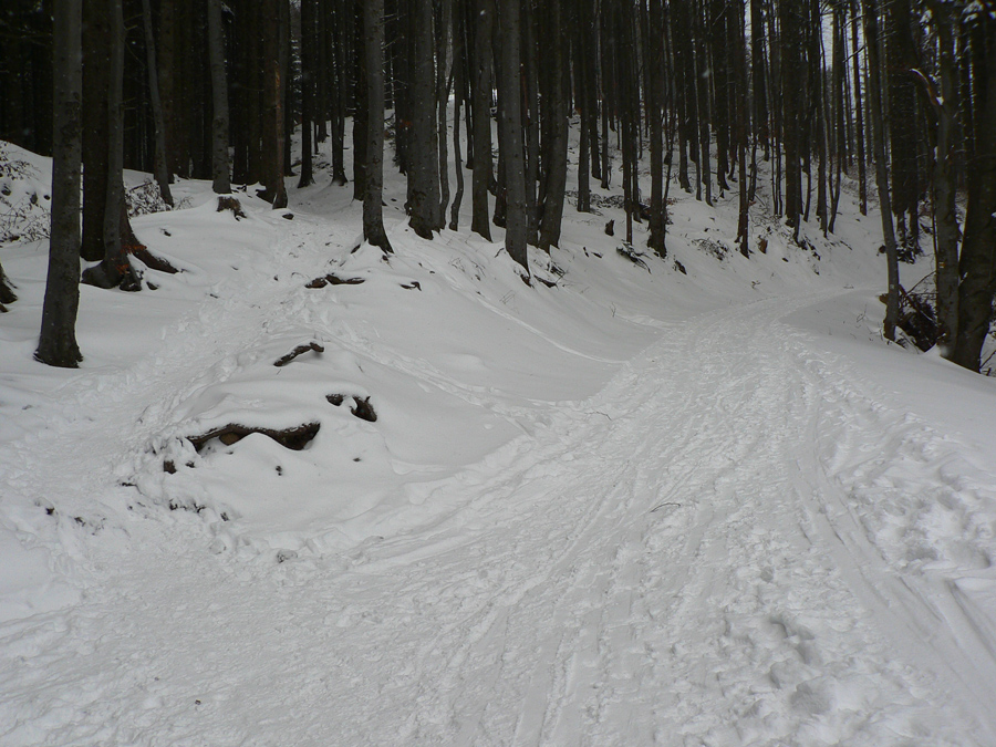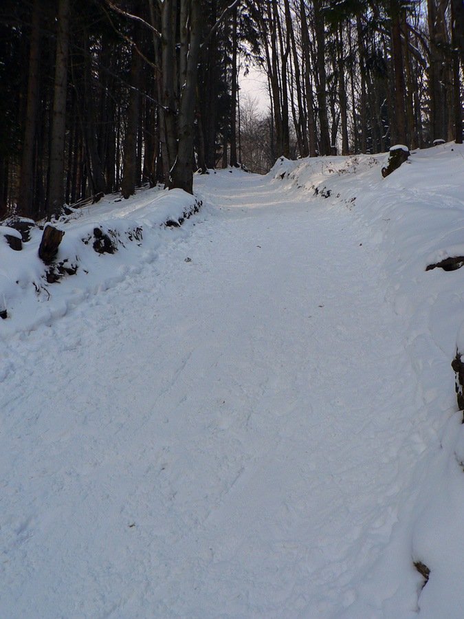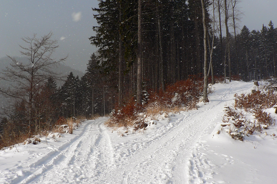 Nad delom už bola skratka doprava do lesa lepšie prechodená ako cesta, tak hor sa hore horou, veď je riedka, sňahu bude: