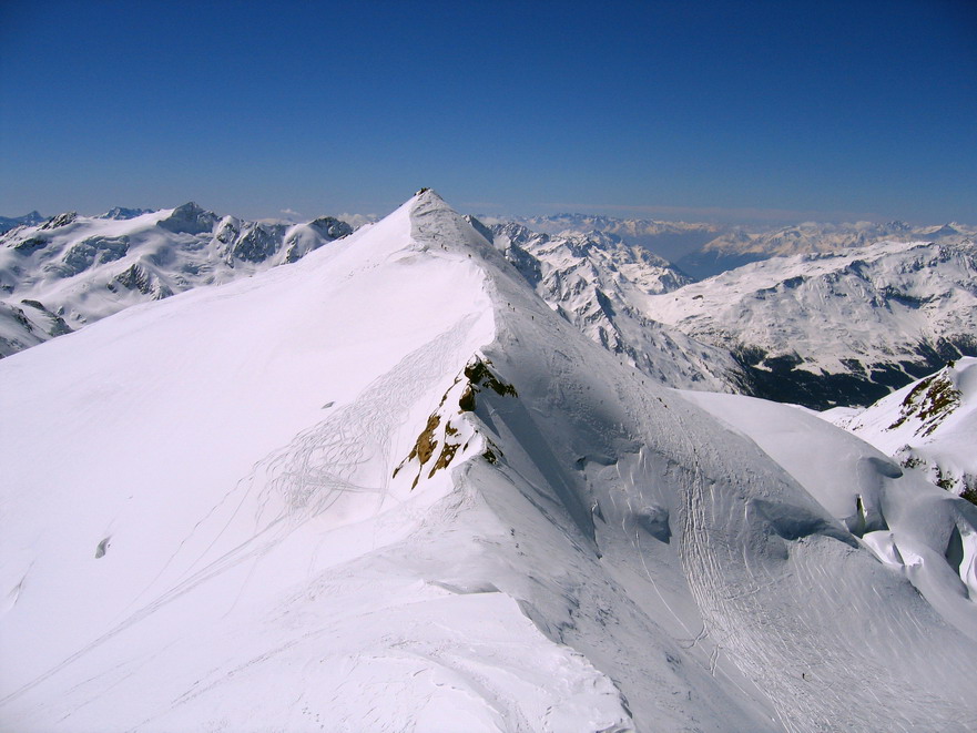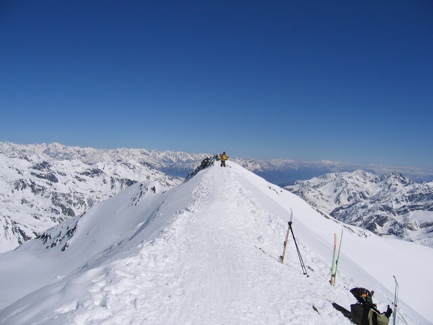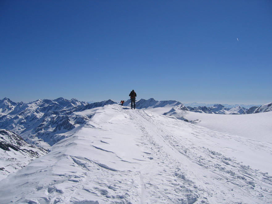Ortlerské Alpy sú právom považované za raj skialpinistov. Množstvo trojtisícových vrcholov pokrytých ľadovcovými čiapkami ponúka nekonečné možnosti. Každý si tu nájde svoju ideálnu túru. Môj prvý kontakt s týmito horami sa zrodil nečakane. Začiatkom apríla 2006, po skončení sezóny v Dolomitoch, sme boli už na ceste domov, keď nás osud zavial do Suldenu (Južné Tirolsko).Samozrejme dôvodom boli skôr pracovné starosti, ako zimné radovánky. V každom prípade som dostal šancu podniknúť celodennú túru zo Suldenu a tak som neváhal.