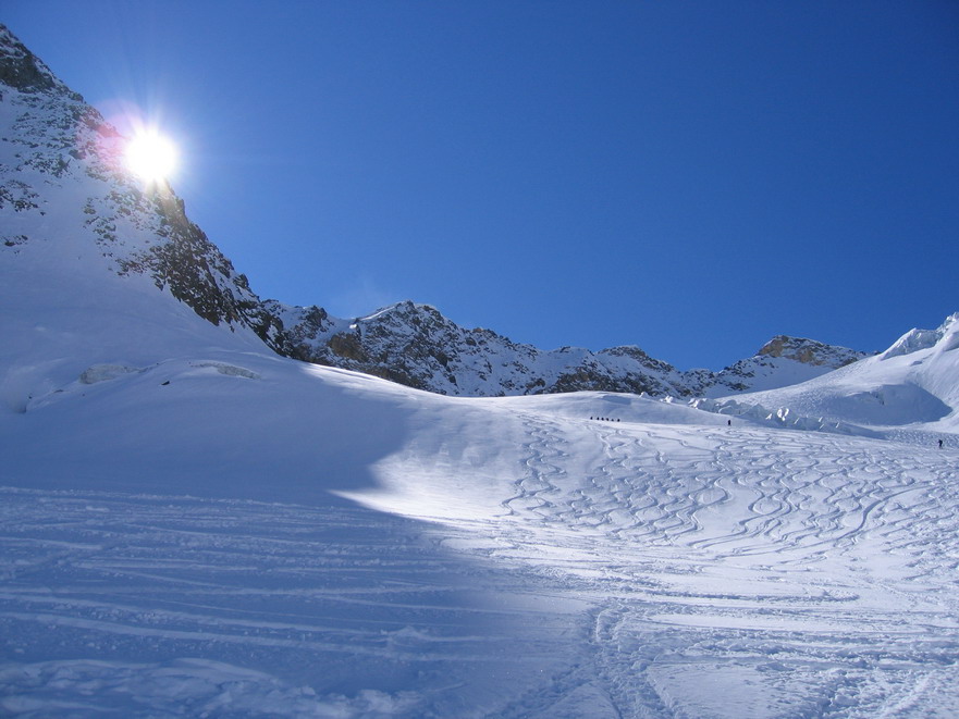 OBTIAŽNOSŤ: Technicky ľahšia túra. Sklon do 35 stupňov. Na ľadovci koncom zimy neboli nebezpečné trhliny, ale človek nikdy nevie... Po ľadovci musíte prejsť pekných pár kilometrov, nesnažte sa ušetriť na lanovke, hore sa vám to bohato vráti.