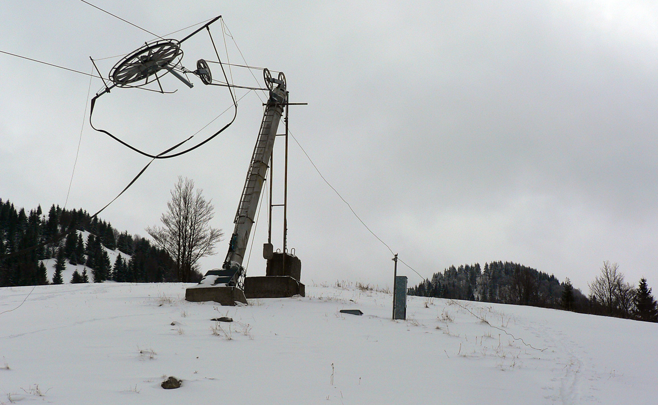 Takže: veľmi neskoré ráno, Nižné Revúce. Ignoroval som žltú značku hneď na začiatku a zamieril rovno pod vlek. Lebo tráva trčala spod snehu nahusto všade a aj na zjazdovke mi bolo hneď jasné, že cestou nazad dole to budú musieť byť veeeeľmi opatrné oblúčiky. Sneh síce prikryl nerovnosti, ale tak, že miestami 30 cm, miestami len zo päť. Zamrznuté krtince zákerne striehli!