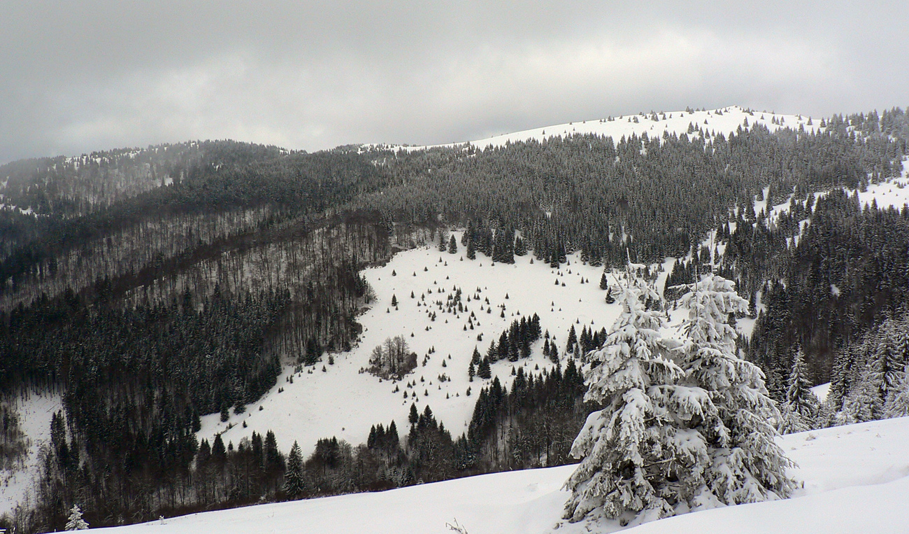 Príjemných 1403 preto, lebo mraky sedeli zakvačené na hrebeňoch Veľkej Fatry aj Nízkych Tatier, okolo Zvolena sa to ale aspoň trhalo a chvíľami bolo aj celkom do diaľok vidieť. Dokonca aj výpary ružomberskej celulózky :-) No a keďže ešte minulý víkend boli doliny suché, bolo načim vymyslieť, kade hore. Dúfal som, že po tej revúckej zjazdovke sa bude dať aj dole...