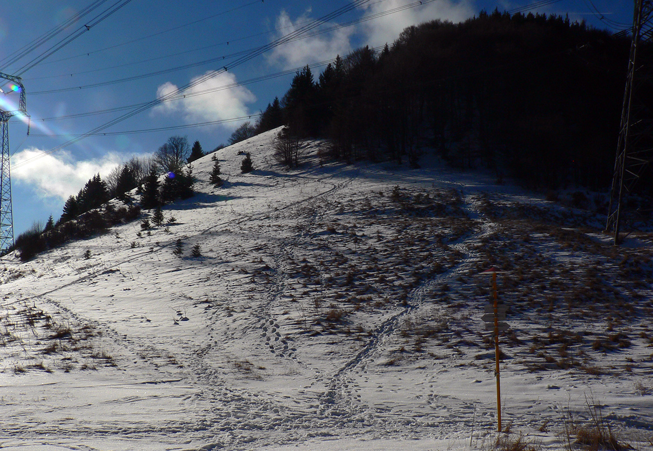 Po vystúpení z busu druhé nemilé prekvapenie - tak málo snehu pri pohľade na okolité kopce som teda nečakal. Že sa novoročné sneženie obmedzilo ozaj len na severnejšie kopce, to bol poriadny podraz! Južne orientované svahy Zvolena hneď zavrhujem, pokúsim sa preraziť na druhej strane smerom pod Prašivú a keď to nepôjde, povrtím sa na Záhradišti hore – dole po zjazdovke, čo už...