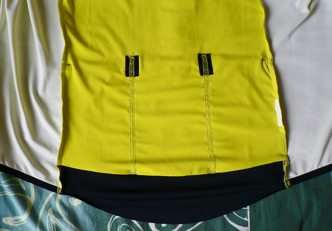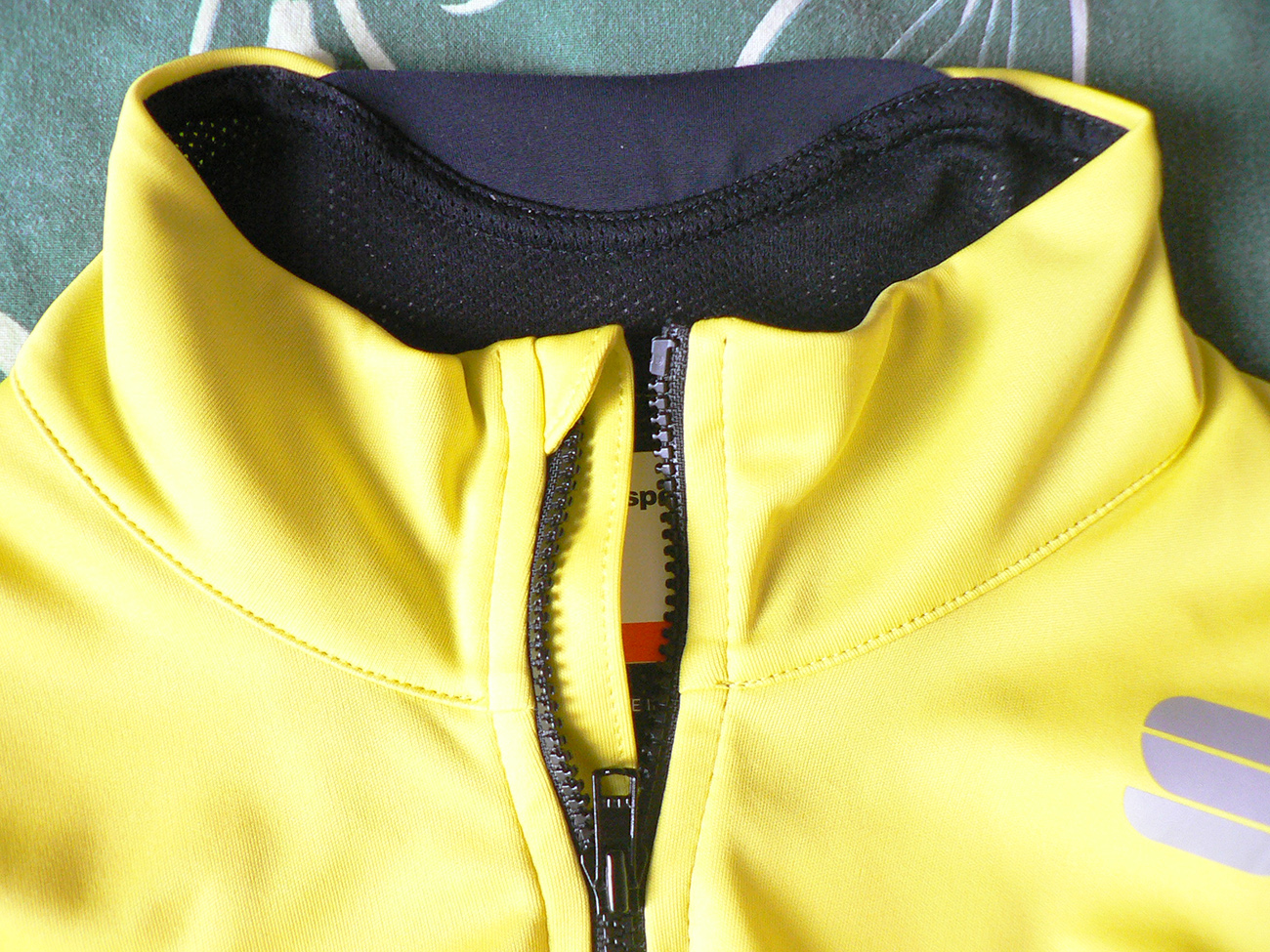 Základom je materiál NoRain na chrbtovom paneli, značkou Sportful patentovaná tkanina s vysokou odolnosťou, ale najmä výborne priedušná a zároveň nenasiakavá, čo má zabezpečiť vodoodpudivá úprava na báze nanotechnológie. Na ramenách a vpredu je použitá iná tkanina WindShield 3L, odolnejšia zase proti vetru. Nechýba vyšší golier, zvnútra ešte podšitý sieťkou, predĺžené rukávy, siahajúce až k lakťom a ukončené len rezom. Pod klasickými troma vreckami je chrbtová časť dole tiež mierne predĺžená a strihnutá do oblúka kvôli lepšej ochrane pred vodou, odfrkujúcou od zadného kolesa. V praxi sa ale ten pruh látky naskladá pod vrecká, nejaké predĺženie dresu neregistrujem.