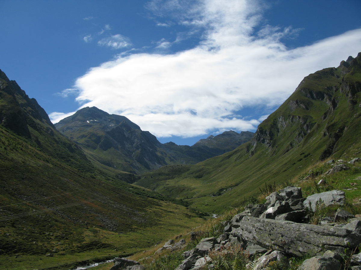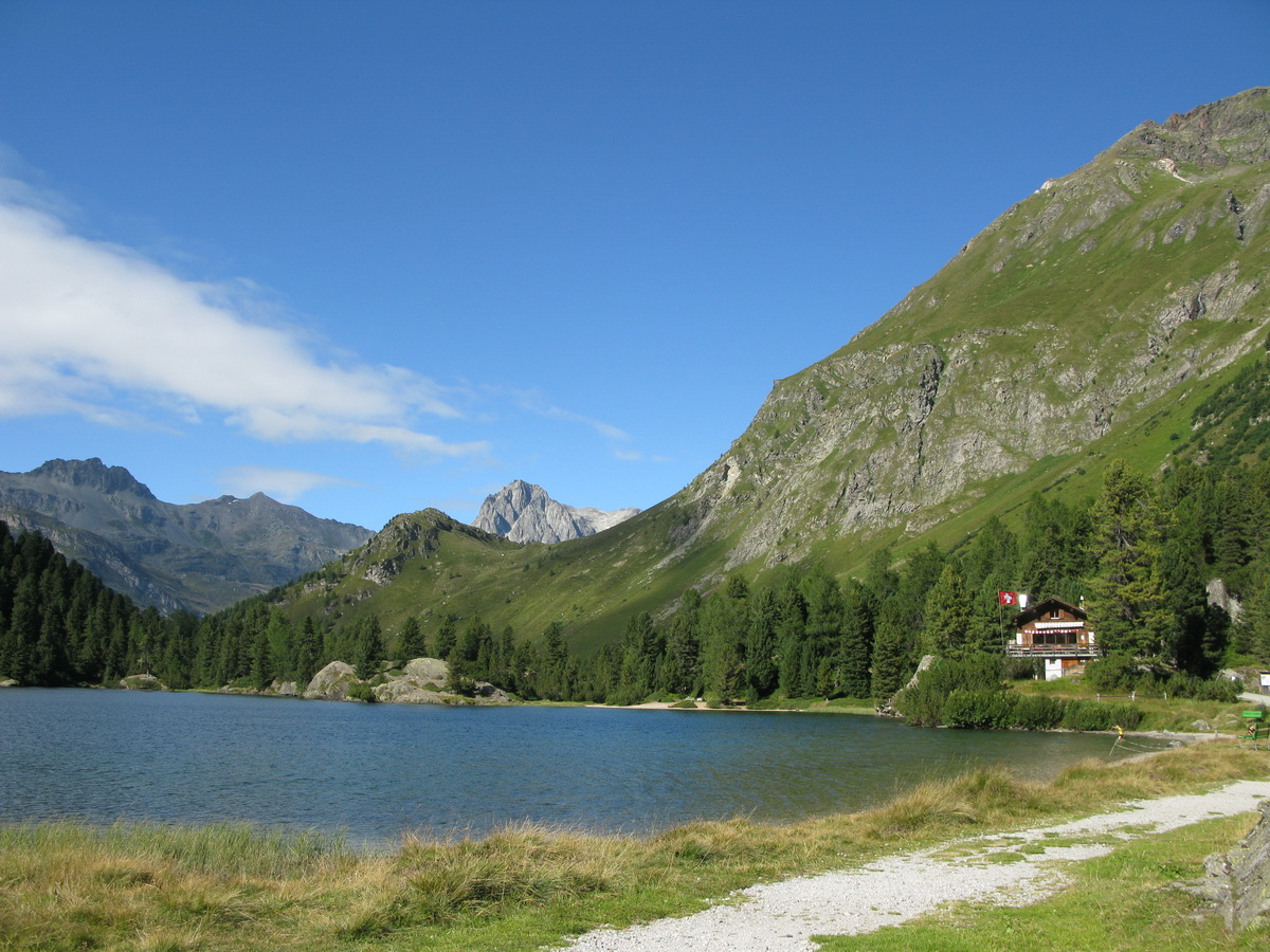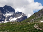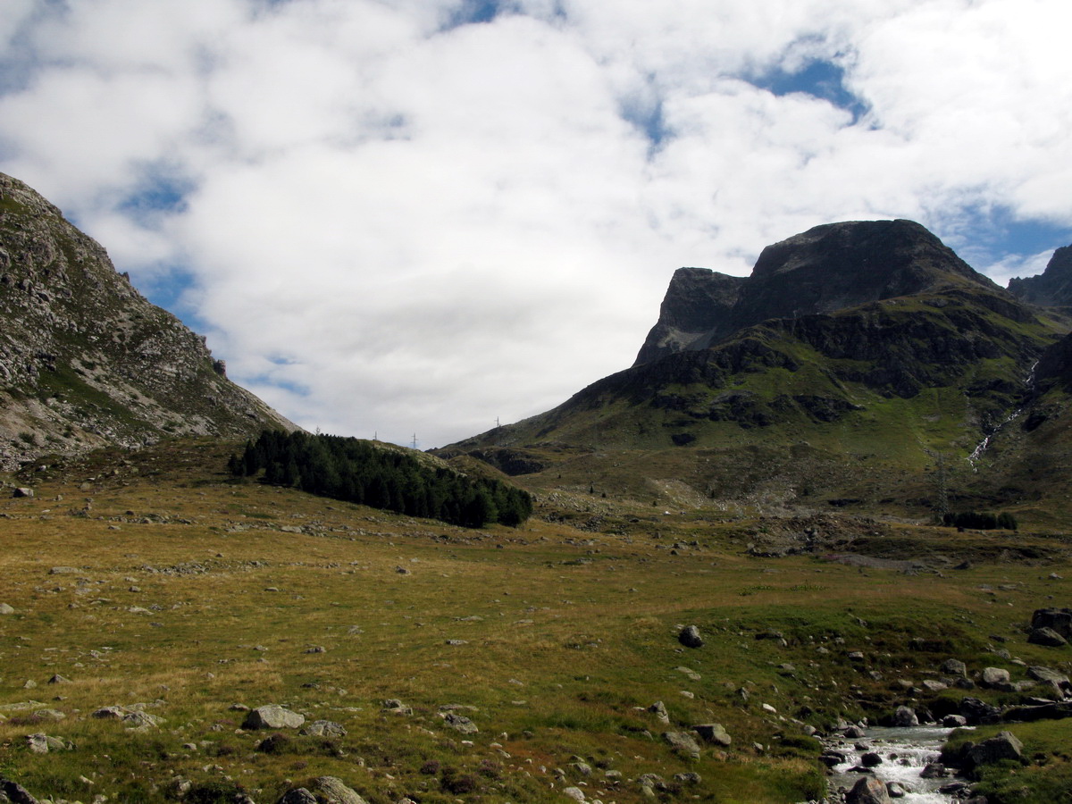 Auto som zaparkoval na prvom odpočívadle nad Silvaplanou. Takto som sa vyhol všetkým tým plateným parkoviskám v údolí. Po asfaltovej rozcvičke nasledoval asfaltový zjazd proti studenému vetru až po dedinku Bivio (1769m). Tu majú dokonca menšie lyžiarske stredisko, práve popod vleky začalo stúpanie na Septimer. Široká štrková cesta dokonale vyklčovanými pasienkami. Tento prechod cez hory používali už starí Rimania. Počas stúpania som rozmýšľal, či si dnes vôbec zajazdím. "Čo ak bude podobná cesta aj do druhej strany?!" obával som sa.