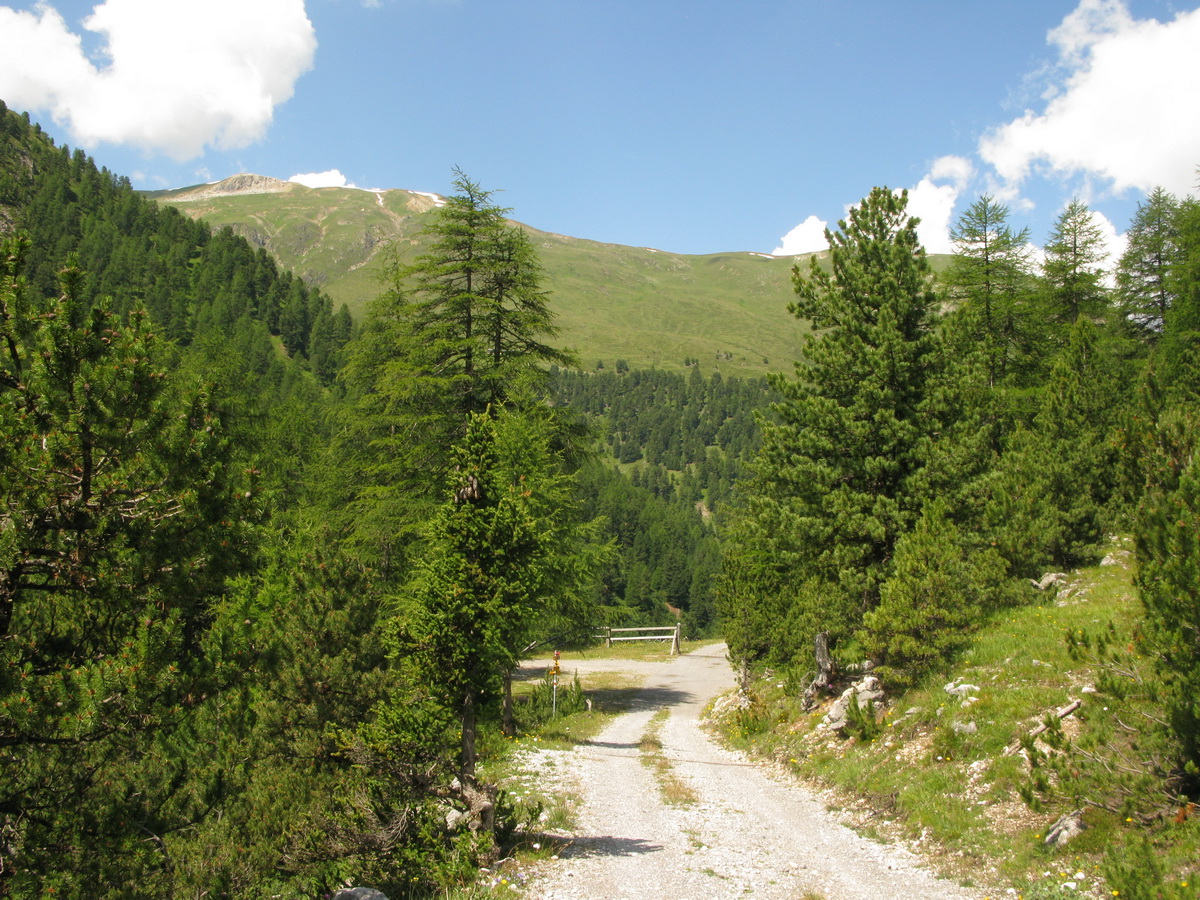Kúsok za osadou S-Chanf prechádzam popri parkoviskách, ozdobených parkovacími automatmi, a začínam pozvoľne stúpať po kvalitnej štrkovej ceste. Chvíľu to trvá, kým popredbieham všetkých turistov s kočíkmi, a môžem si už nerušene vychutnávať divokú prírodu.