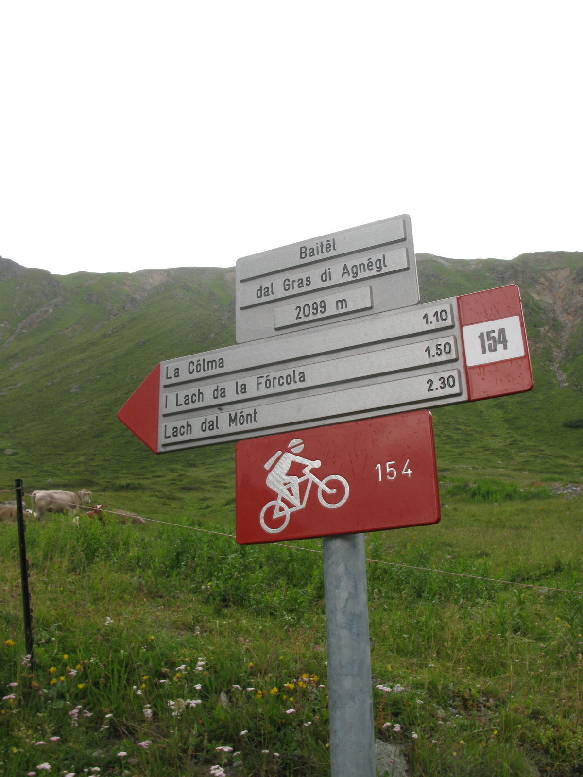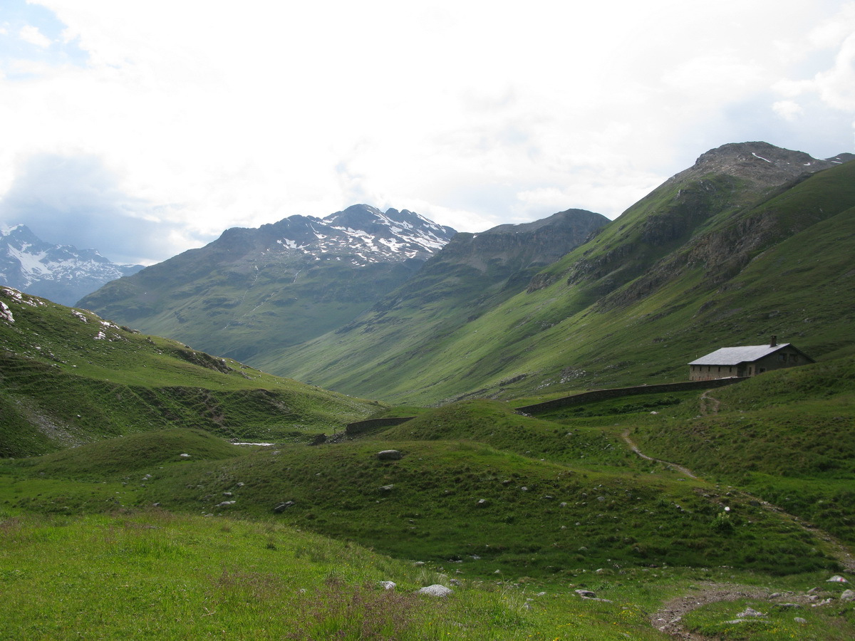 La Stretta, sedlo na hranici medzi Švajčiarskom a Talianskom. Aj o tomto mieste sa tu už písalo. Tentoraz musí ísť bajk miestami aj na chrbát. Prší a fúka vietor. Nevadí, som oblečený dobre. Vychutnávam si krásny deň. Zjazd dolinou Val da Fain je celý zjazdný. Klasický scenár: najprv pekný singltrail a od salaša štrková prístupová cesta.