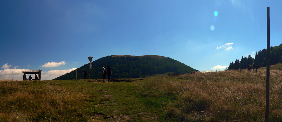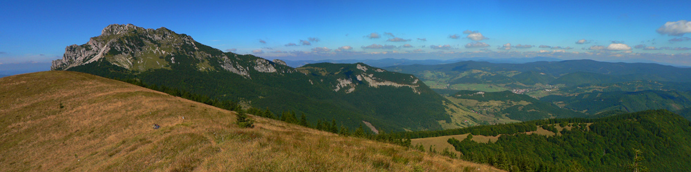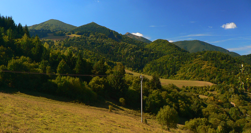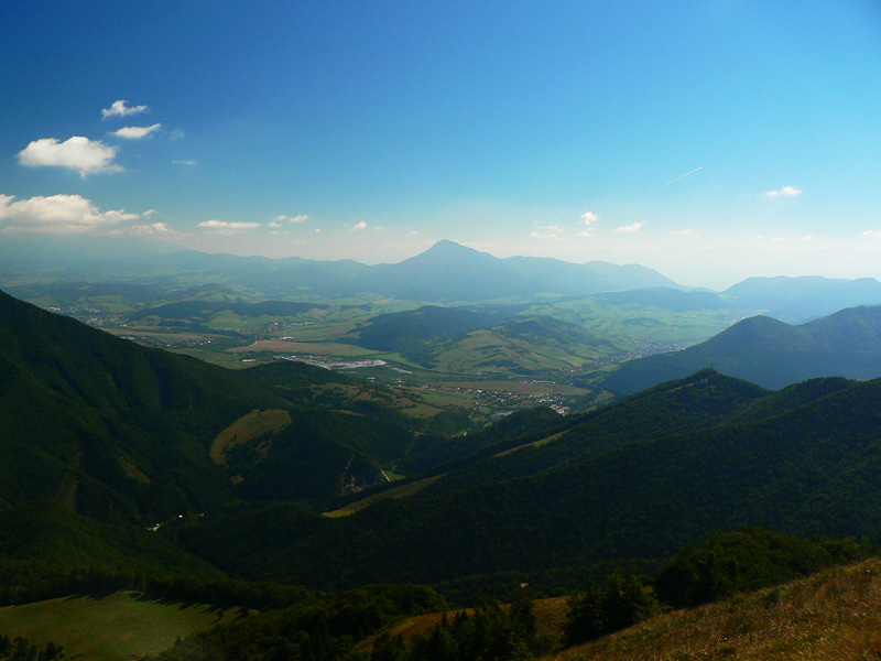 Zo Štefanovej je to „hore“ najskôr prudšie, potom miernejšie lesom do sedla Medziholie. Tak na hodinku a pol, jeden z najfrekventovanejších chodníkov vo Vrátnej. Nakoniec ešte krátky prudší úsek z Medziholia na Osnicu – tam už naopak nechodí skoro nik. Odtiaľ je to už len „dole“. Aj keď v prvej tretine je zostup spestrený niekoľkými krátkymi stupáčikmi. Do sedla Strungový príslop je to poriadne strmý zošup, potom tie hupáčiky okolo Magury a keď sa človek vynorí z lesa na zjazdovke, odtiaľ je to už len dlhééé a čoraz menej strmé klesanie, prevažne lúkami. Prevažne na východ, v ústrety vzdialenejšiemu Choču a bližšiemu Šípu. Ten sa odtiaľto na seba vôbec nepodobá :-) Teda na svoju známejšiu skalnatú tvár, viditeľnú z juhu. Vľavo Kubínska hoľa a vzadu Roháče, vpravo v protisvetle Veľká Fatra.