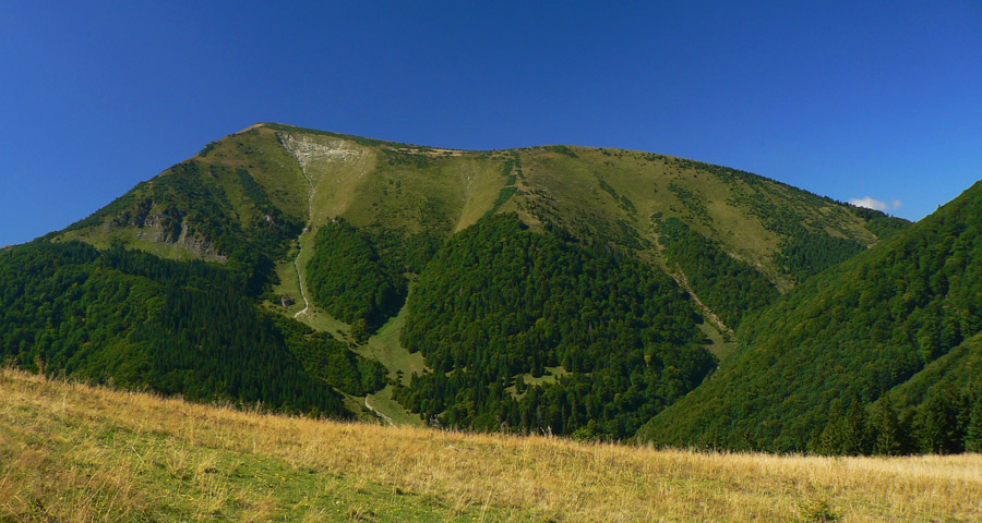 Inak zmena smeru nepomohla, aj tak som sa často obzeral za seba, hlavne v prvej polovici. Najprv za chrbtom provokujú Sokolie s Bobotami, potom Veľký Rozsutec so Stohom a na koniec samotná Osnica. Takže sa človek celú cestu aj tak vrtí ako osa na cukríku...