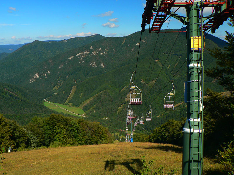 Keď sa človek umorený vynorí z lesa pri hornom vleku, príde vhod prístrešok so stolom a lavicou. Dá sa odtiaľto ešte urobiť malá zachádzka k hornej stanici lanovky. Aj od nej je pekný výhľad – cez dolinu Zázrivky. Pod dolným (rozbitým) vlekom je zostup spestrený nutnosťou prejsť krížom cez salaš, „opevnený“ elektrickým plotom. Celkom sranda :-) Potom už len tie lúky a modrá značka končí tunelom v lieští priamo na dolnom konci Párnice, na hlavnej. Na stanicu a k busu je to odtiaľ tak 10 minút.