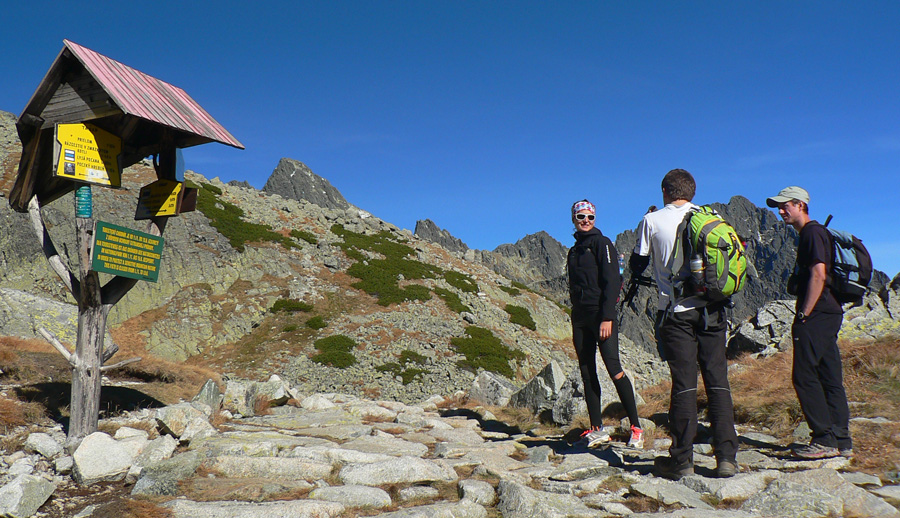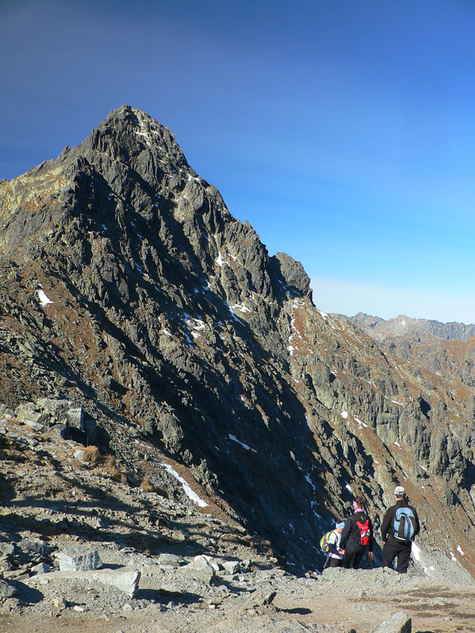 Začali sme v družnom rozhovore smerom na Sliezsky dom, ale kdesi v polovici družný hovor náhle ustal, prečo asi? Lebo nežnejšia štvrtina zostavy prudko pridala (vraj aby nám zima nebola), a tak traja psíci vyvesili jazyky a poslušne nasledovali. Na Velickej poľane prvá pauza, akože na fotenie, na Sliezskom druhá, akože tiež. Ale pomaly dochádzali výhovorky a zámienky. A to sme boli len na začiatku! Výhovorka, že na kramliach pod hrebeňom treba opatrne, lebo nemáme sedáky, feraťáky a prilby, neprešla.