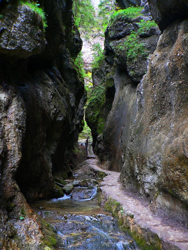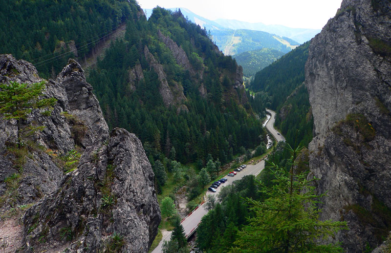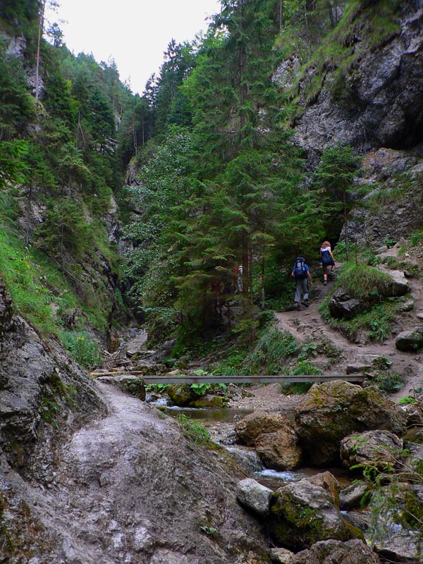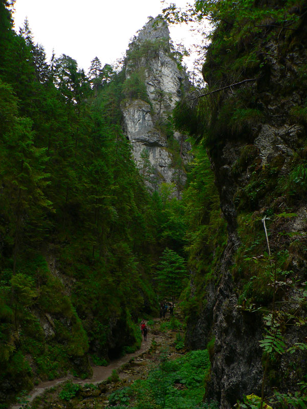 Tak sme teda došli. Užili sme si výhľady, ale aj smrad – tieto chodníky sú jedny z najviac frekventovaných a na konci suchého leta sa pod každým kríkom váľa nejaké to h... O bielych použitých vreckovkách ani nehovorím, plastového odpadu sme nazbierali za tašku, čo dodať? A kto je schopný odhodiť do trávy medzi skalné veže plechovku od piva, ten musí mať tie hovná aj v hlave :-) Už aby poriadne zapršalo! A keď už vodu spomíname, treba si nabrať na začiatku – jediný pramienok, kde sa dá doplniť (okrem bufetov) je v kaňone kúsok nad hotelom Diery. Potom až na konci, dolu v Obšívanke. V Tiesňavách sa asi nik nenapije, predsa len ten potok zbiera všetko z celej Vrátnej :-)