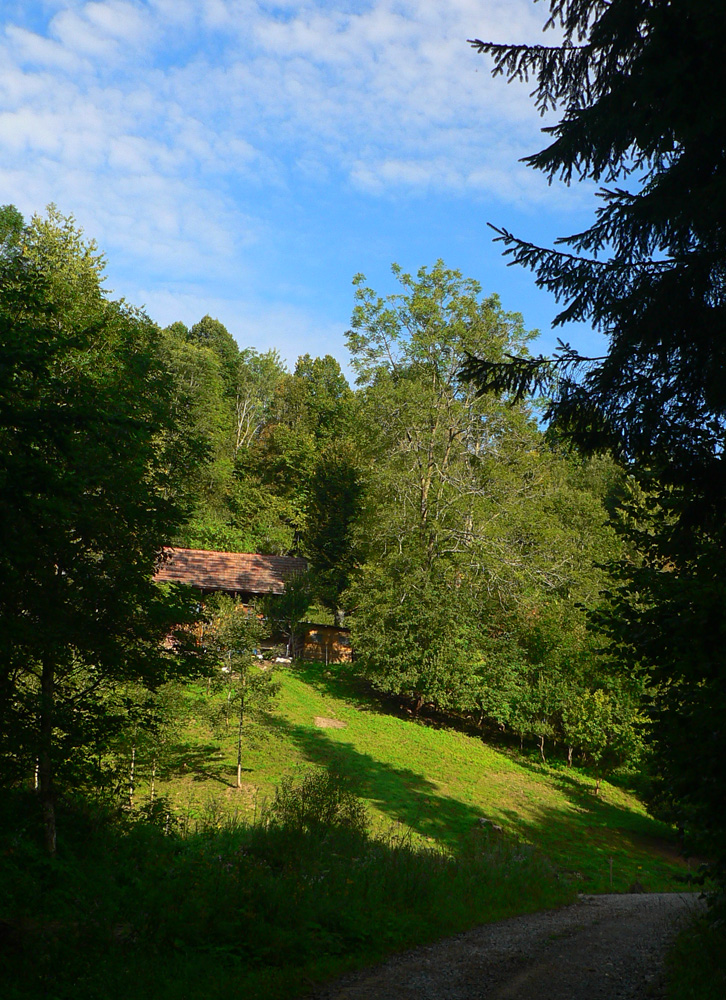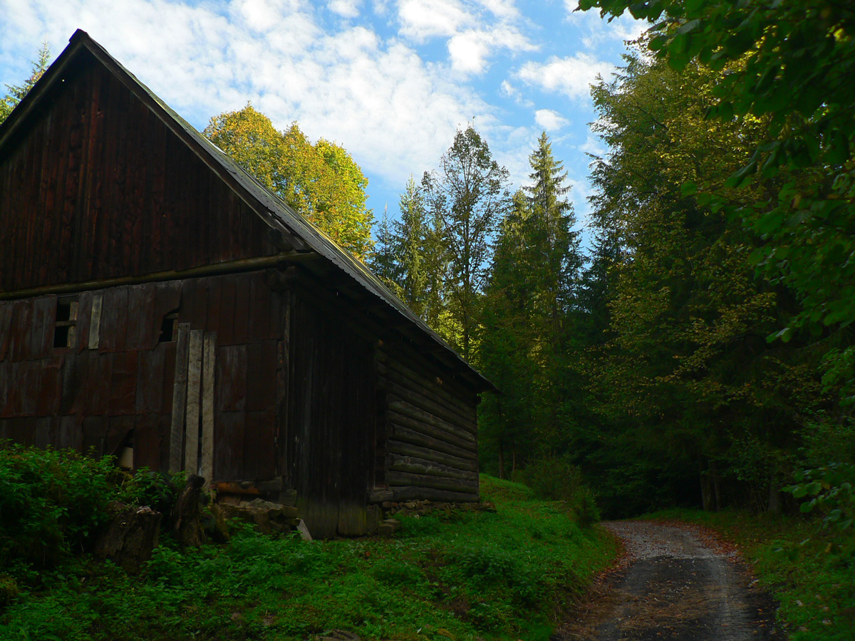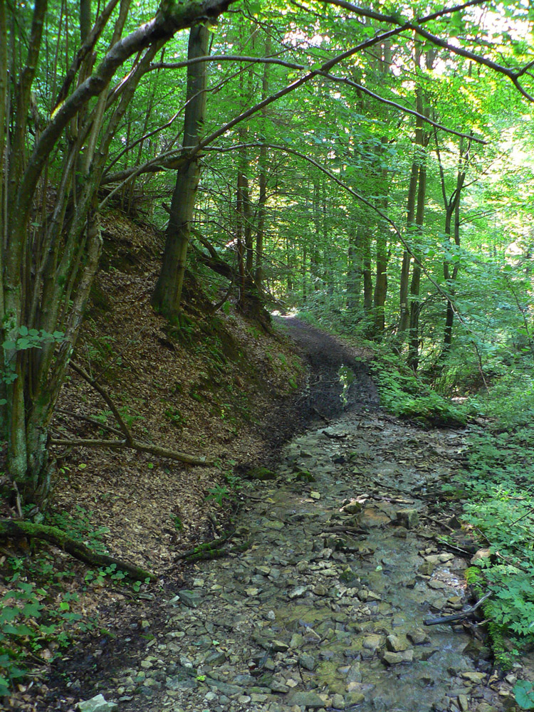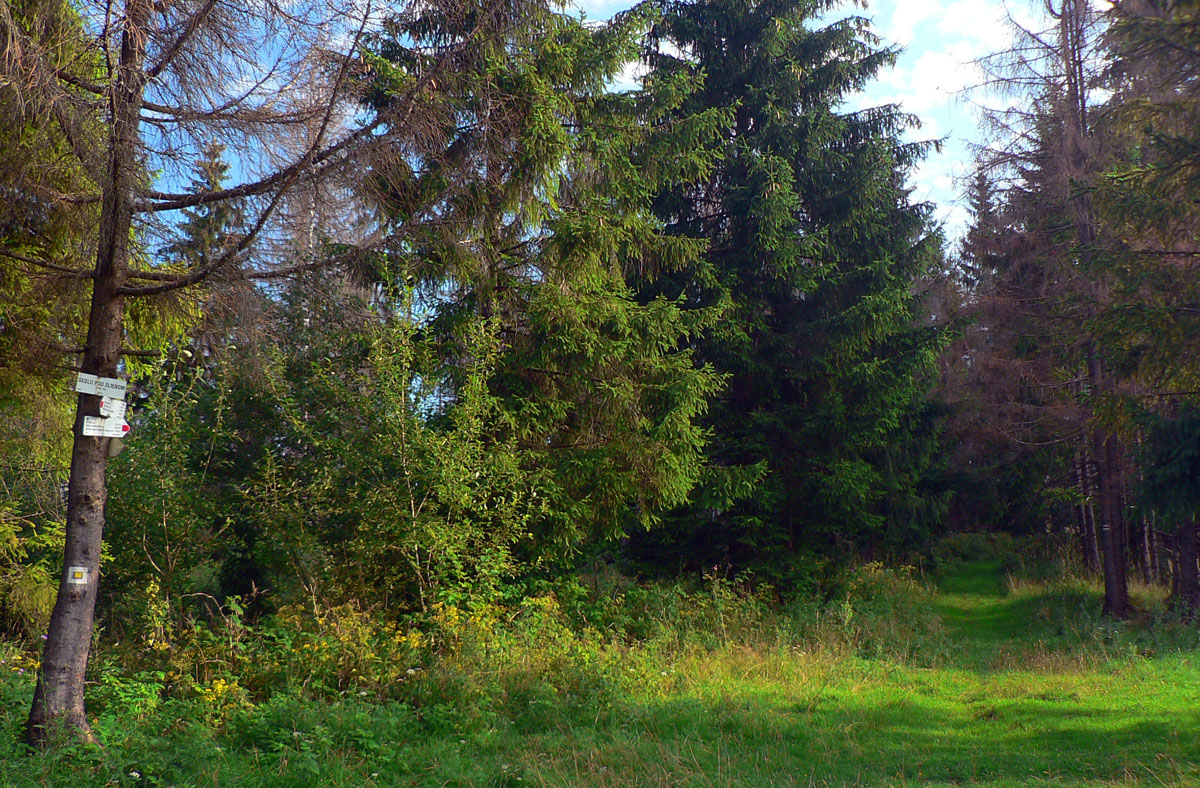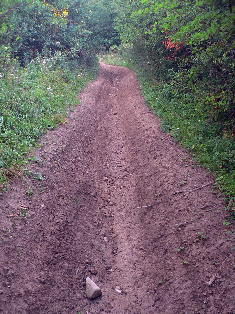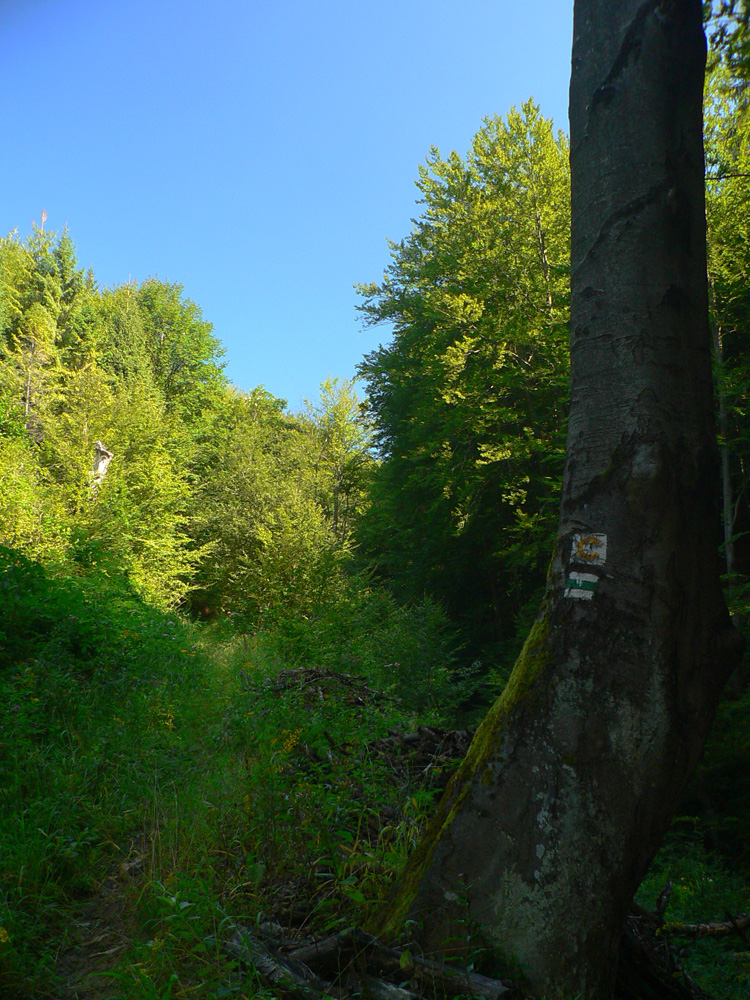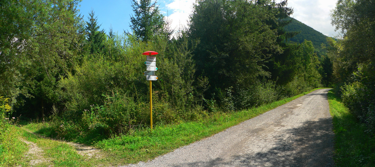 Zo sedla Lutiška sa ide hore po zelenej, po zvážnici vystlanej makadamom, asi dva kiláky a jedna serpentína, v pohode. Potom ale nasleduje tá spomínaná výnimka. V sedielku s križovatkou zvážnic značka aj cyklotrasa nenápadne odbočujú doprava dole, smer Vyšné Kamence, ale do poriadnej divočiny. Cesta tu je, ale dávno nepoužívaná, takže v lese popadané stromy, na čistinách krovie a žihľava vyše človeka. Nižšie rozbahnená cesta, niekedy ide aj priamo potokom, aj dole sa zle ide, nieto ešte hore. Ktorý inteligent toto ako cyklotrasu označil??? Bajkerom by som odporučil z toho sedielka pokračovať zvážnicou pod Mravečník a zostúpiť do Terchovej po modrej, alebo ešte zo sedla Lutiška to rubnúť po žltej ku Káčerovcom a stade dole do Tižinej.