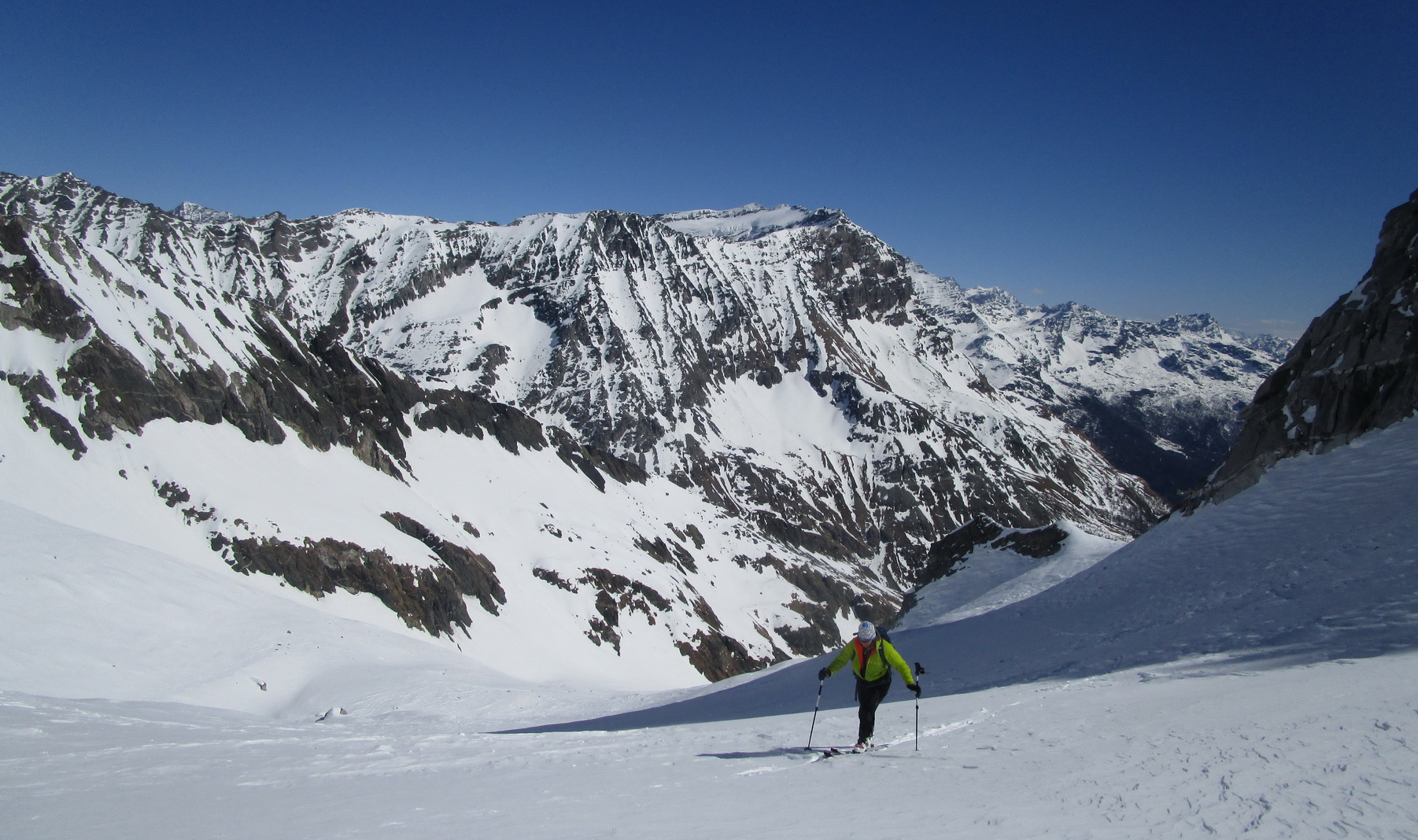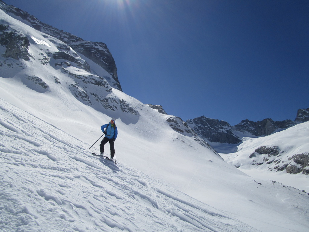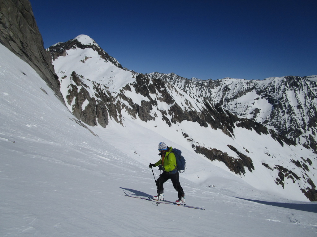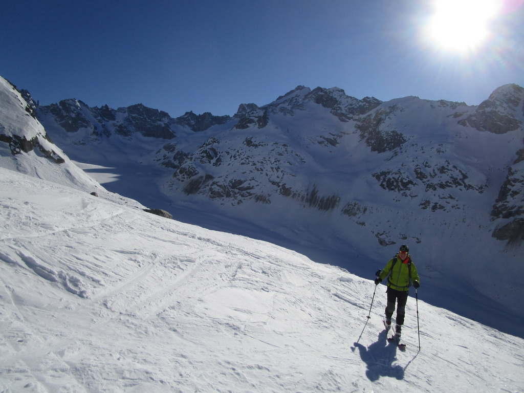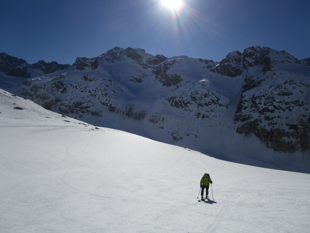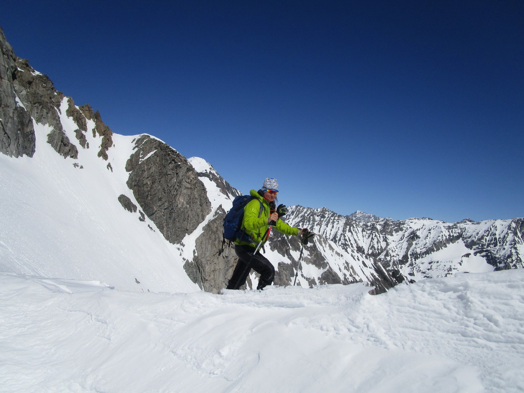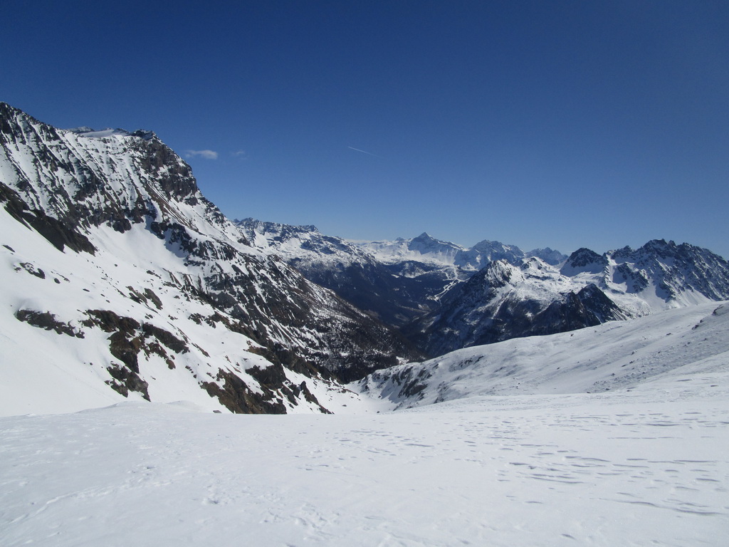 Na záver: celá oblasť je vďaka svojej polohe skialpovým rajom a tipom hlavne pre skúsených skialpinistov. Vzhľadom na rozľahlosť a veľké vzdialenosti na chatu nechodia tzv. denný turisti. A tak máte počas túry prakticky istotu, že v celej oblasti sa pohybujú iba tí ľudia čo vyrazili ráno z chaty. V čase nášho pobytu cca 20 ľudí. Z talianskej strany určite tiež prichádzajú skialpinisti, videli sme stopy ale nestretli sme nikoho.