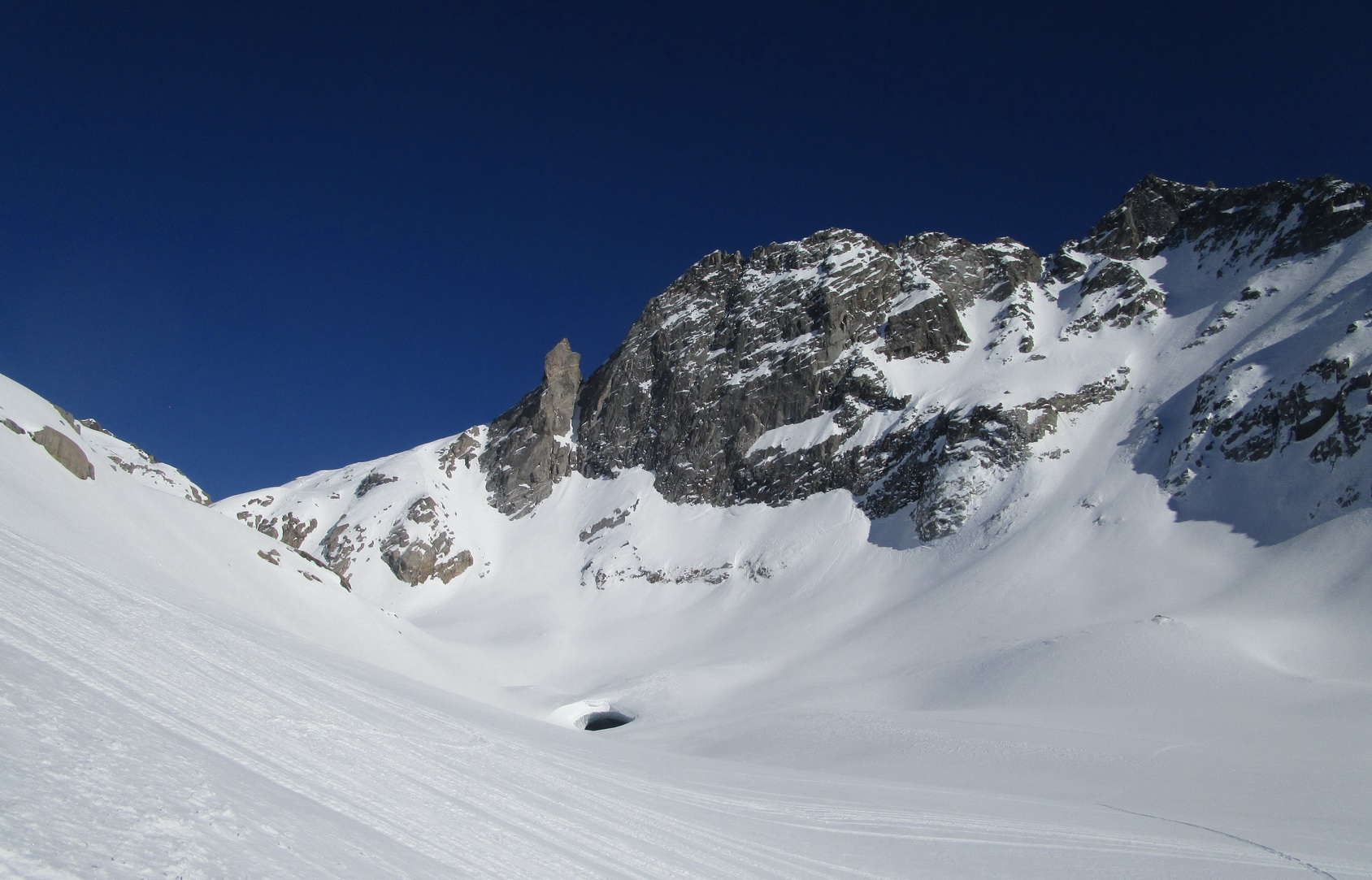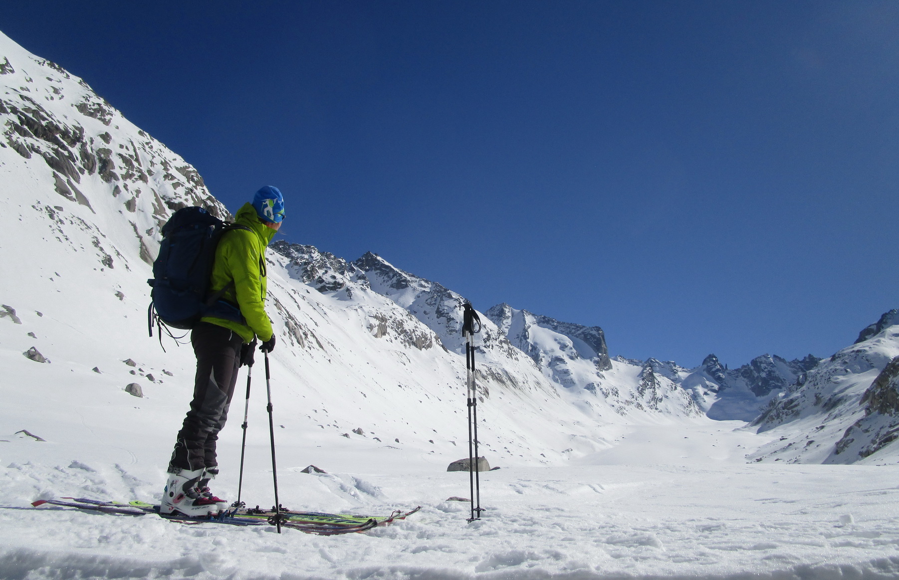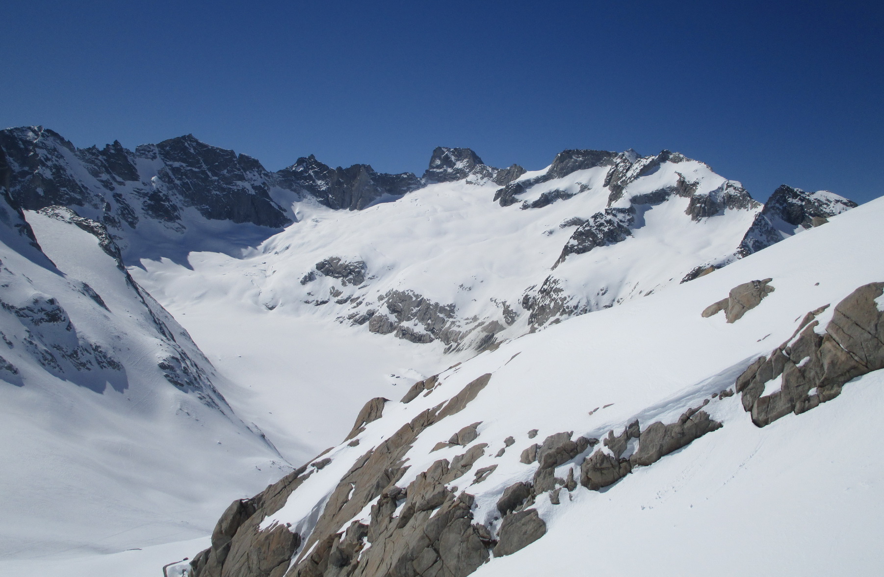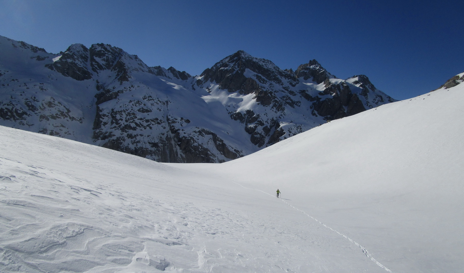 Na záver: celá oblasť je vďaka svojej polohe skialpovým rajom a tipom hlavne pre skúsených skialpinistov. Vzhľadom na rozľahlosť a veľké vzdialenosti na chatu nechodia tzv. denný turisti. A tak máte počas túry prakticky istotu, že v celej oblasti sa pohybujú iba tí ľudia čo vyrazili ráno z chaty. V čase nášho pobytu cca 20 ľudí. Z talianskej strany určite tiež prichádzajú skialpinisti, videli sme stopy ale nestretli sme nikoho.