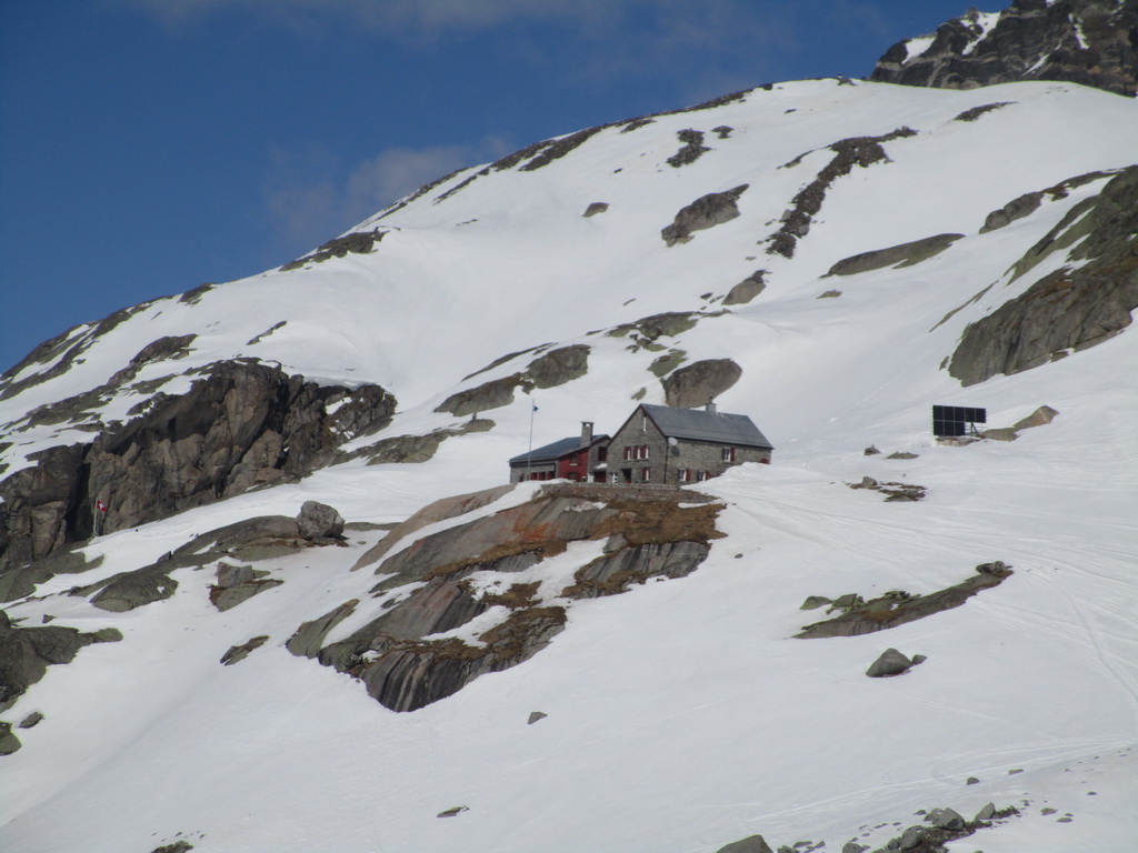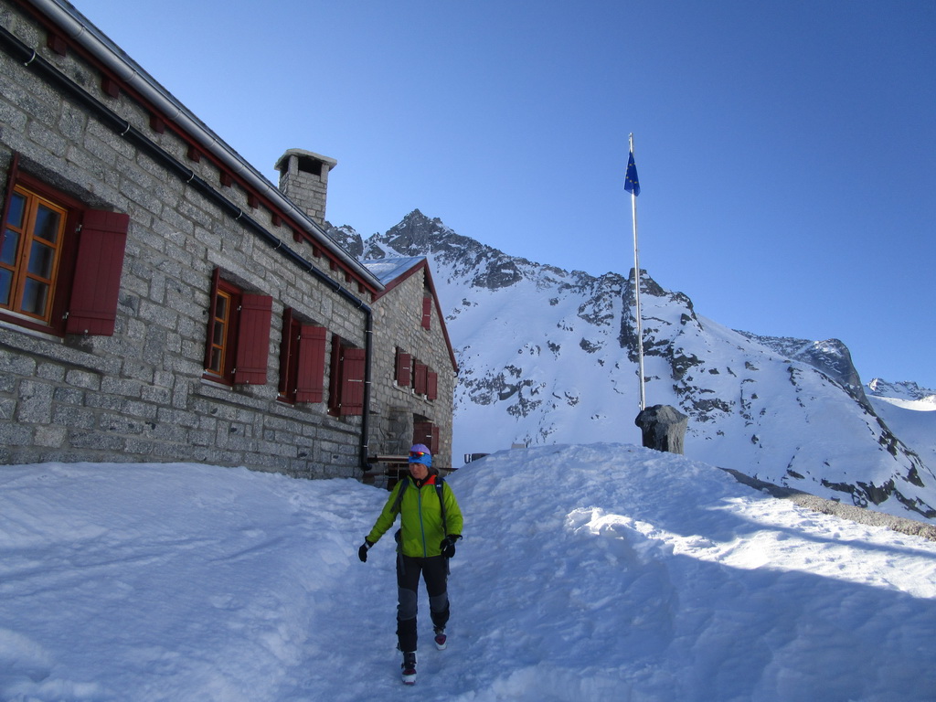 Našťastie ešte stojí aj keď už výrazne menšia. Pofotíme a ideme na chatu. Capanna del Forno (2574) je taký malý raj na zemi. Chata je perfektne vykúrená. Je tu sušiareň na veci. Chatár Beat so svojou českou ženou Alenou sa o ňu starajú vzorne. Vychutnávame si večerný relax vo vykúrenej chate. Lejeme do seba čaj za čajom a chystáme sa na zajtrajší deň. (prenocovanie s polpenziou 63 CHF)