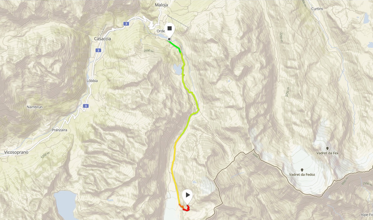 Prevýšenie na ceste ku chate: Maloja - Capanna Forno = 850 v.m.