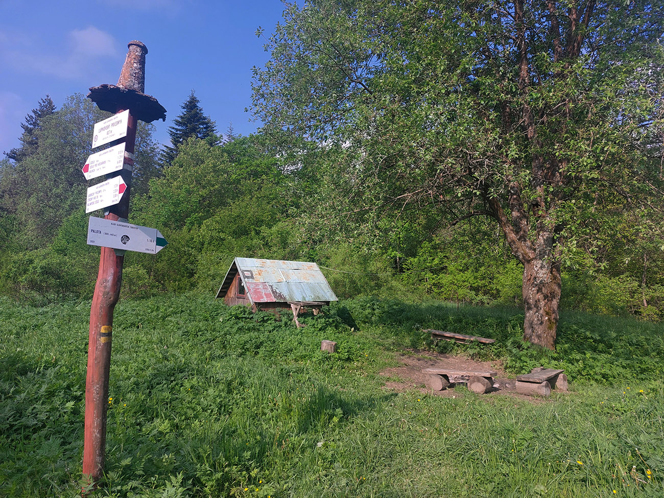 V Laboreckom priesmyku hnusne rozbitá zvážnica, v Lupkovskom zarastené, mokré lúky a tráva po pás, kde nevidno pod nohy. Dole k tunelu vodu hľadať nejdem, furt mám dosť. Radšej si dám ľahké raňajky a dúfam, že ich telo prijme. Je osem hodín a na slnku tak akurát príjemne, teplúčko.