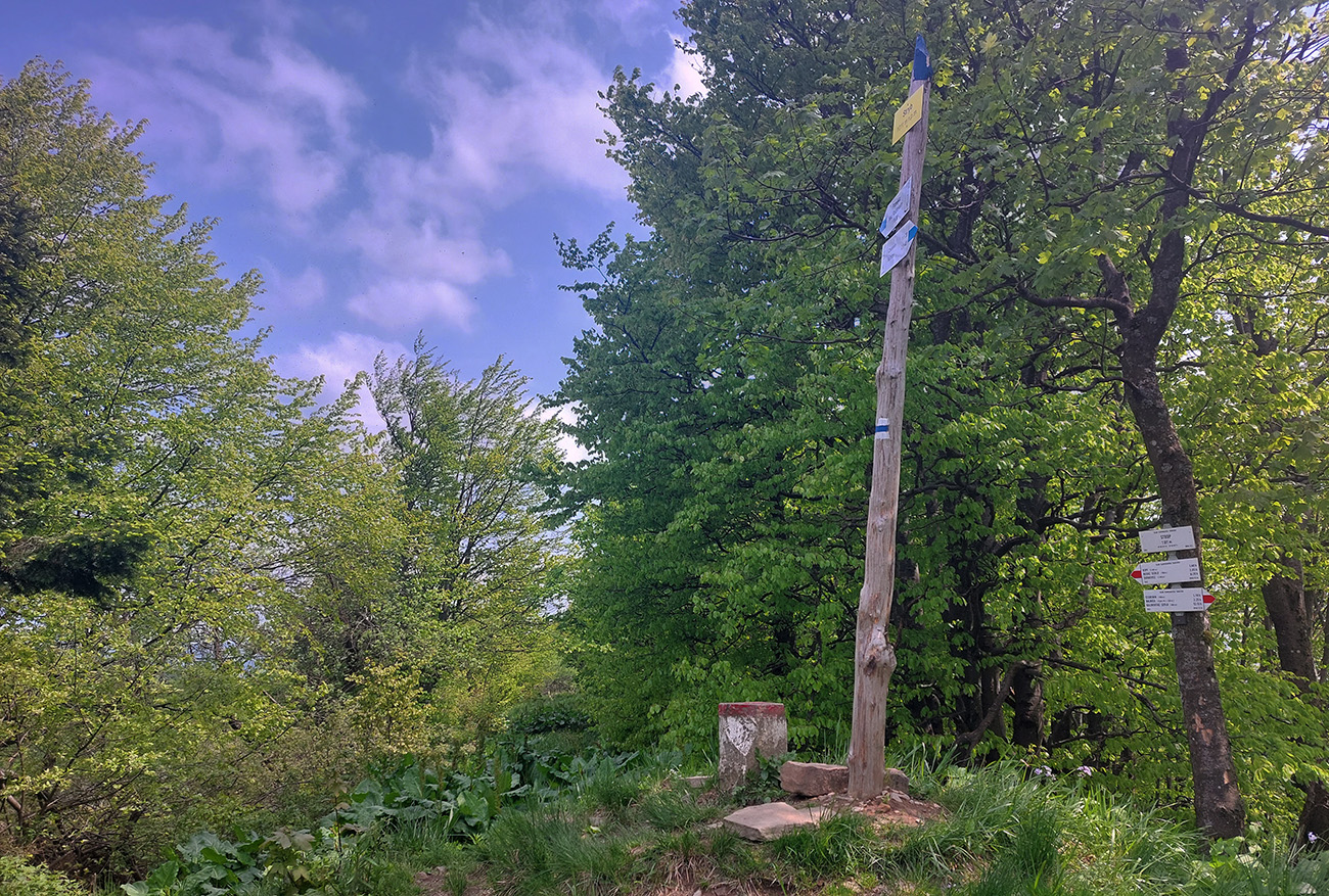 Medzi tým, pred tým aj potom pekné lesy, ale aj rúbane, vojenské cintoríny, stará vojenská pozorovateľňa na Pasekách aj zákonom chránené jedliny - a stále hore a dole. Zase začínajú strmšie sklony. Prvá séria „štipľavých kopčekov“ začína stúpaním na Szcołb (769 m) a končí v Balnici. Kríza už našťastie povolila, no stúpania idem stále pomalšie.