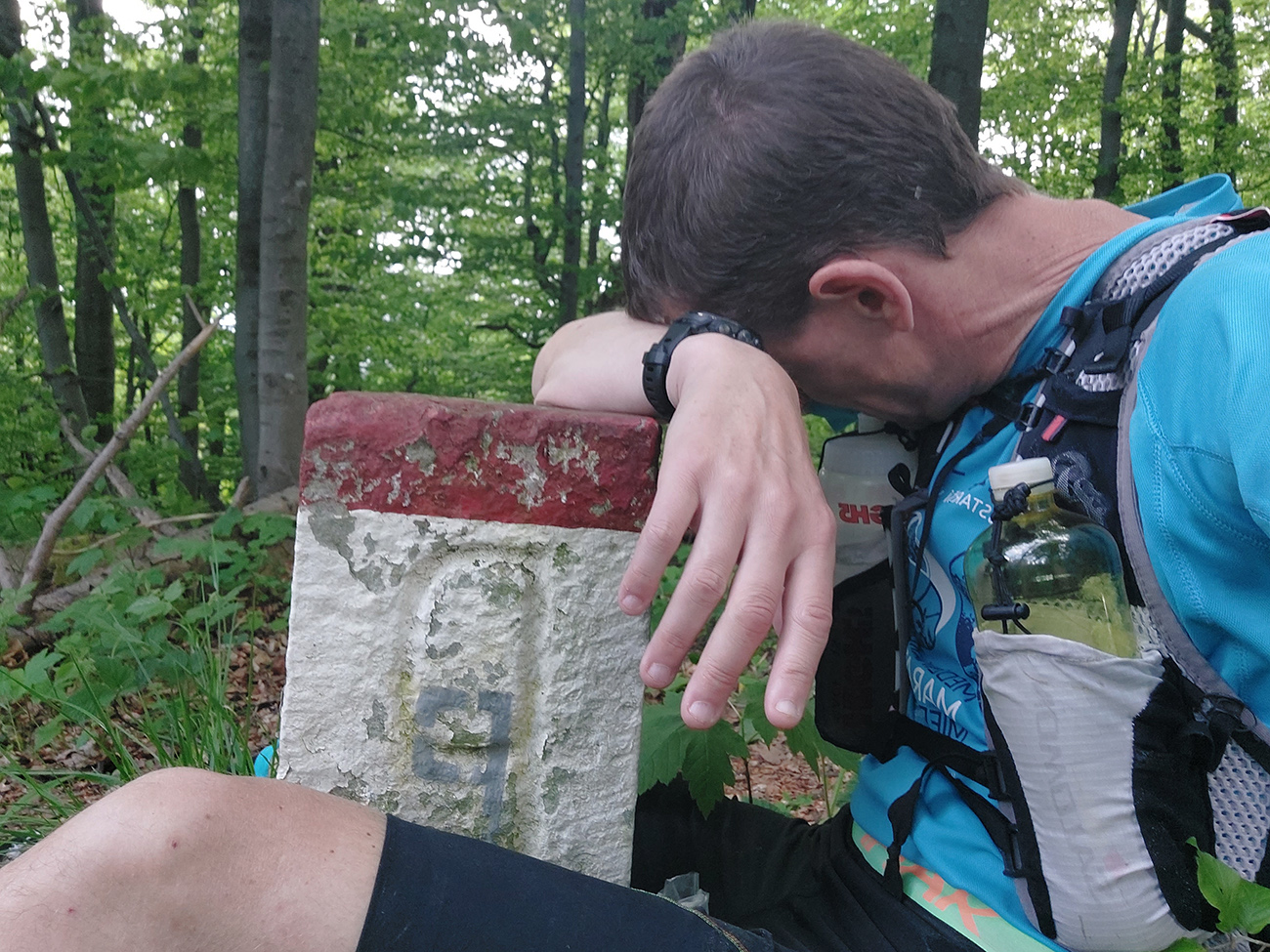 Nie je náročná len parametrami (vraj 248 km a 10 500 v. m.) a logistikou (pre stredoslováka). Pre niekoho aj monotónnosťou, Furt v takom zelenom tuneli, len les a chodník. Kľukatosť je ďalšia výzva – myslel som si, že na hranici to bude pekne prečistené, ale nie. Na mnohých miestach obchádzačky, preliezačky, vyhýbačky. Buď popadaných stromov, alebo blata a hlbokých mlák v koľajach po autách, alebo jednoducho zarastených úsekov. Málo vody – ďalší problém. Na hrebeni a vo flyšovom podloží, klasika... Preto je dobré ísť na jar a mať aj nejaký malý „naberáčik“. Mne poslúžil vrchnák z cyklistického bidónu. Na druhej strane je to krásna divočina a pod nohami v podstate stále pohodlne mäkkúčko. Niekedy až príliš, hehe... Takže som zvážil plusy a mínusy a keď som si koncom mája myslel, že mám čosi natrénované, sadol som o druhej ráno do rýchlika a išlo sa. Výsledok je tu a pod obrázkom aj popis. Snáď niekomu pomôže: