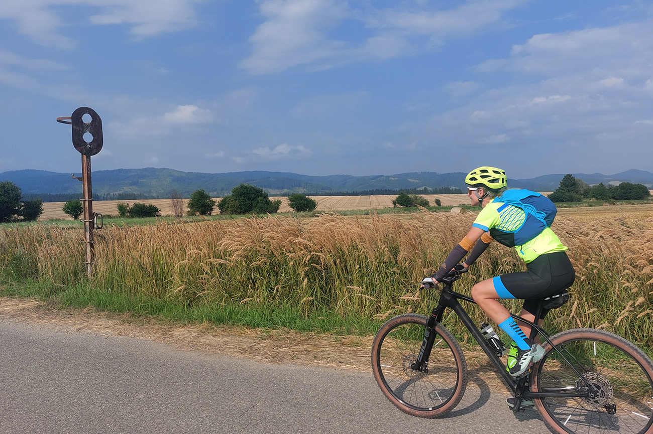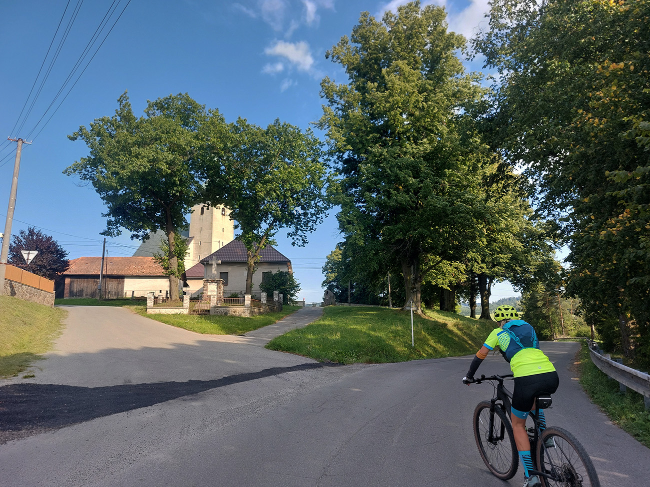Potom už len zošup na panoramatické Sklenianske lúky, zjazd dedinou natiahnutou ako slíž a popri kostole nazad do Rovnej hory a proti protivnému protivetru na niečo fajné čapované do Teplíc, lebo na vlak času dooosť. Fajné to bolo, vďaka za inšpiráciu, aj keď ortodoxný bajker by nad tými cestami možno mávol rukou a nechal ich gravelistom :-) Ale veď cykloturistika, nie?