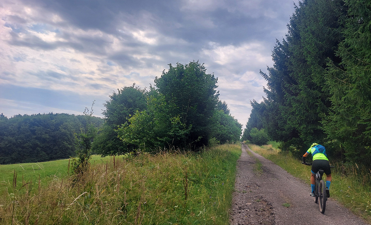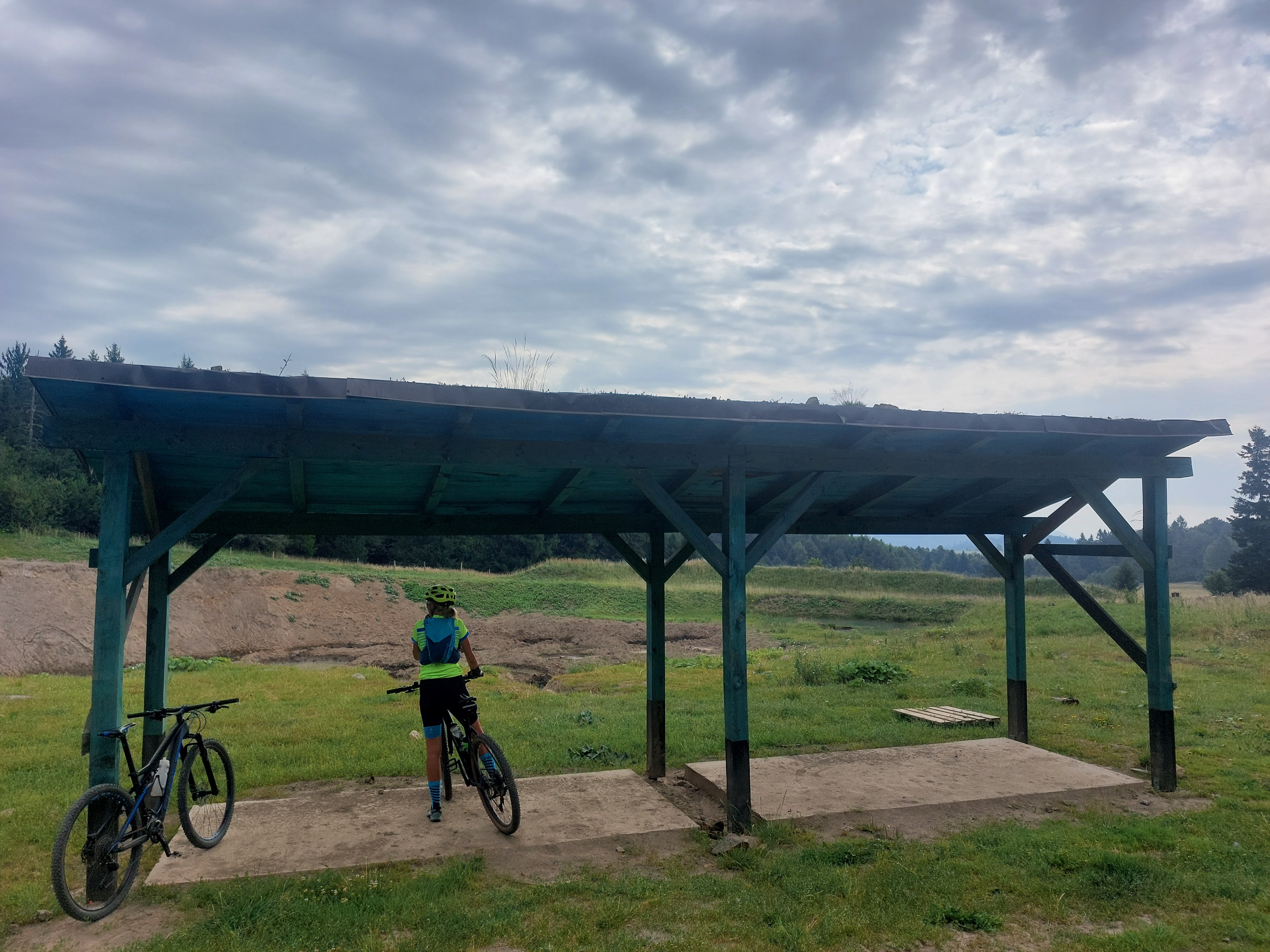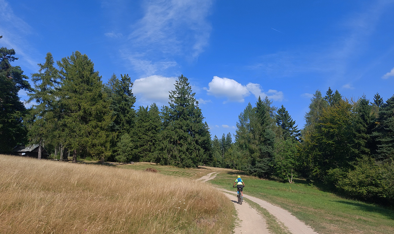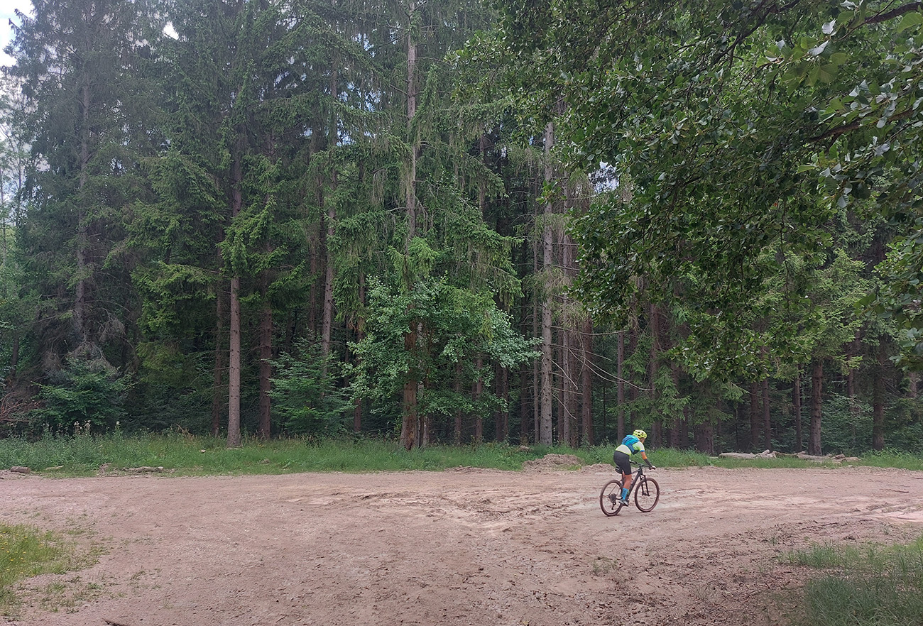 Znovu sa objavila požiadavka na „sprievodcovské služby“, a zároveň bolo treba zvoliť lokalitu, ktorú svojimi búrkami nezasiahne a nezamočí prechádzajúci front. Takže padla voľba na južnú časť Žiaru medzi Turčianskymi Teplicami a Handlovou, kde je na mrte pevných (aj asfaltových) lesných ciest a už ten kút máme tu na Vetromagu viackrát zreportovaný (odkazy sú dole). Technicky to nie je náročné jazdenie, zato ale ani výhľadov nie je veľa, väčšinou sa ide lesom. No také príjemné je to, že sa môžu dvaja vedľa seba v pohode vykecávať za jazdy. Naklikal som nejakých 90 km s možnosťami predĺženia aj skrátenia, ale vďaka frontu sme začali trochu neskôr, tak sme mierne upravovali. Na vzdialenosti sa to však takmer neprejavilo. Jednou zo zásadných vecí na trase bol prieskum „použiteľnosti“ spojky medzi východnými (nad Kunešovom) a západnými traverzami (ponad Handlovú), cez sedielko medzi Havraňou skalou (864 m) a Vysokou horou (909 m). Spojka pobiede použiteľná, o tom viac nižšie, takto to celé dopadlo, so začiatkom a cieľom v TT: