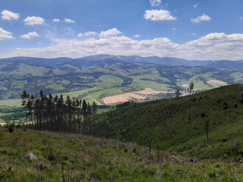 Strom spadol len nedávno, výhľady , vydýcham a pokračujem strmým zjazdom ďalej kopírujúc hrebeň. Aj keď tu už jazdím roky stále je čo objavovať a ja používam len nedávno objavenú variantu (mapka na Strave)