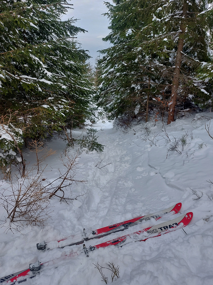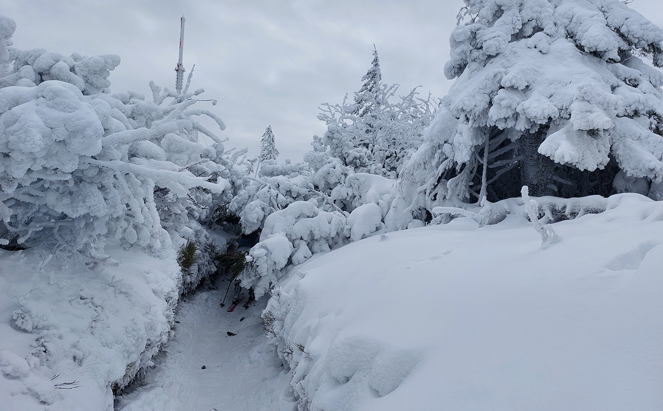 Na Minčol ma neťahalo, ale dozvedel som sa, že hore to na lyžiach pustí. Dole samozrejme treba zniesť, záver je strmý. Celá hrebeňovka smerom na Hole už potom pohodová, no pozor – len v tomto smere, do kopca. Opačne na pár miestach treba nosiť. Aj keď samozrejme v strmšej časti pod Zázrivou zo dva kŕdle piraniek striehnu a tesne pred vysielačom sa treba párkrát poriadne hlboko pokloniť v tom kosodrevinovom tuneli. Aj vo finále popri plote je to poriadne úzke.
