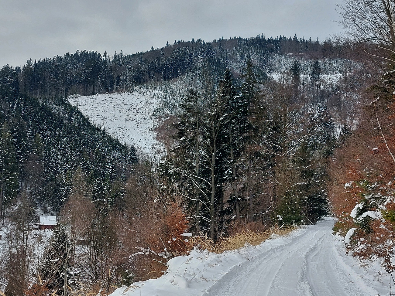 Ale ušetril som kus cesty smerom ku Studničke, lebo asfaltka je odhrnutá, posypaná a vyjazdená. Našťastie sa dalo kadejako po mantineloch, aj keď nie moc komfortne. No nie je to ďaleko a bolo treba aj túto lokalitku čeknúť.
