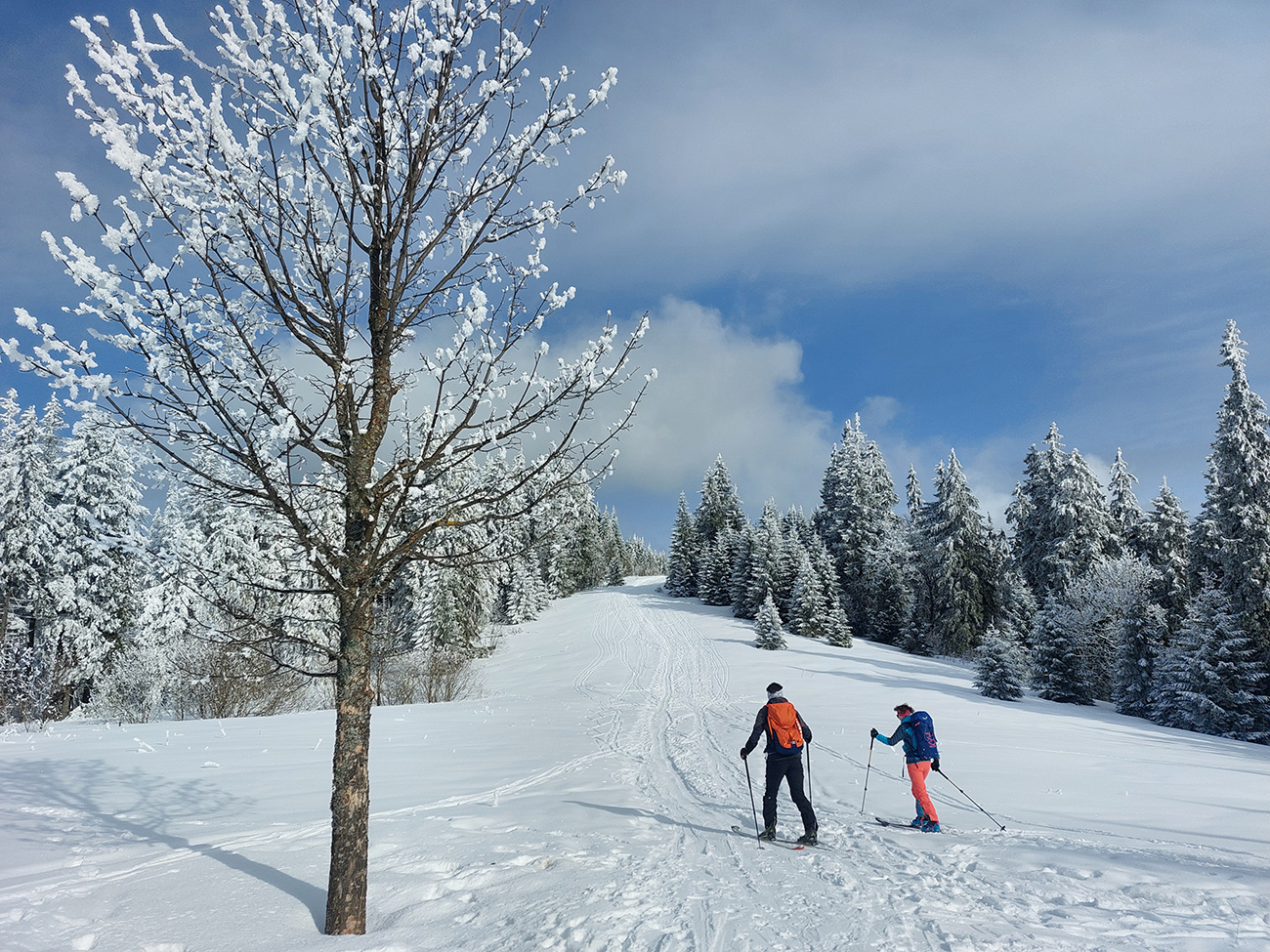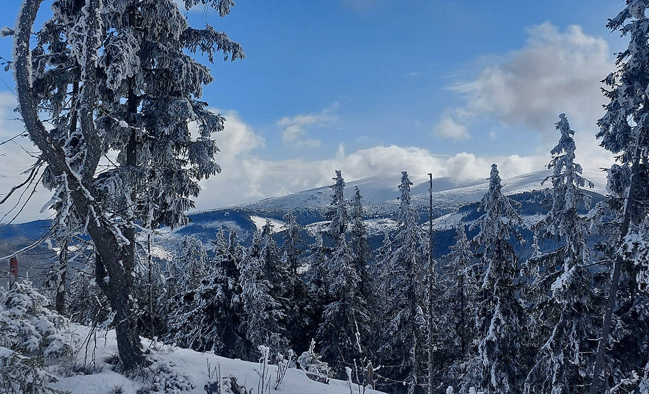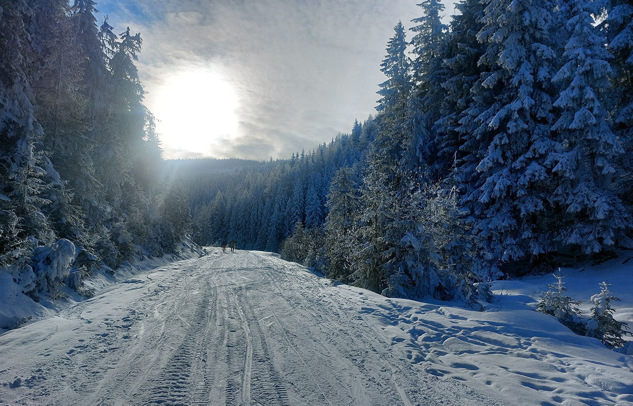 Potom už pohodlná šúchačka, skoro po vrstevnici. Zvyšky lesa obielené, počas takejto zimy to tam vyzerá stokrát lepšie ako v lete.