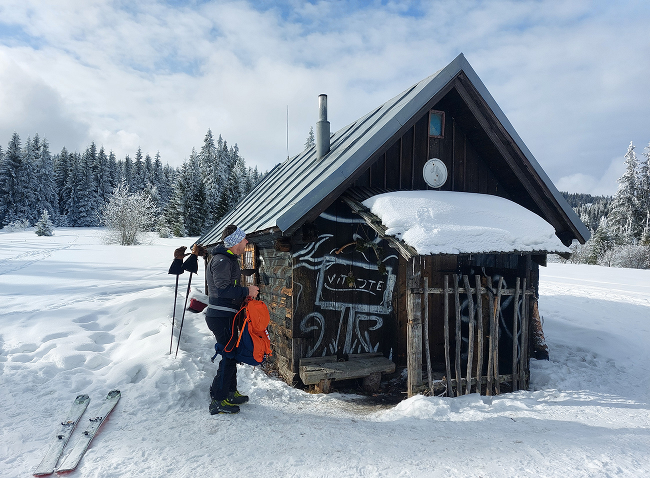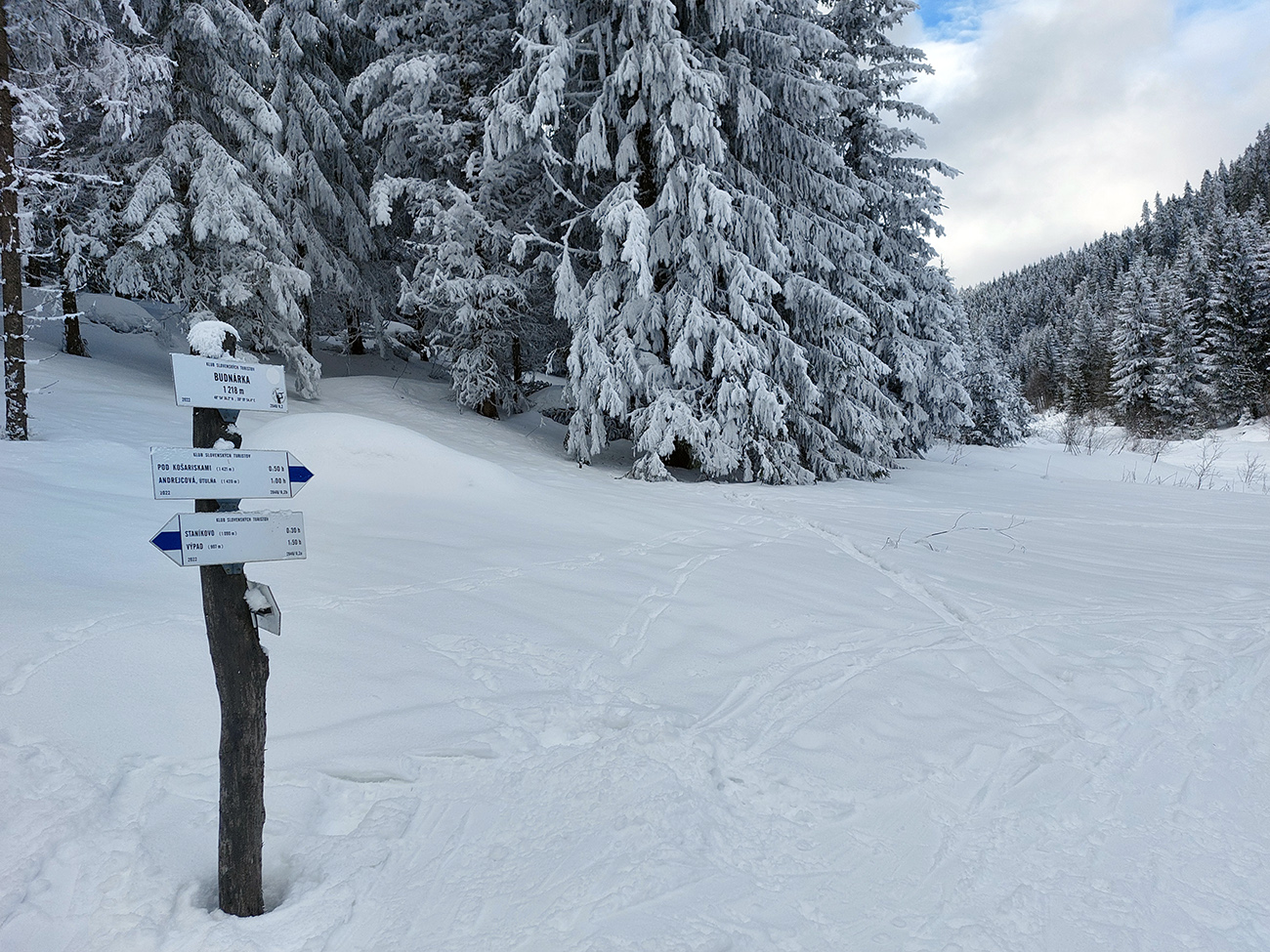 Dalo by sa pokračovať v oblúkovaní až na dno Ždiarskej doliny k tomu smerovníku, ale že radšej nalepíme a prepásujeme sa k tej svetoznámej „búde nárekov“. Lyžovačka pre spestrenie vraj cestou nazad, možno...