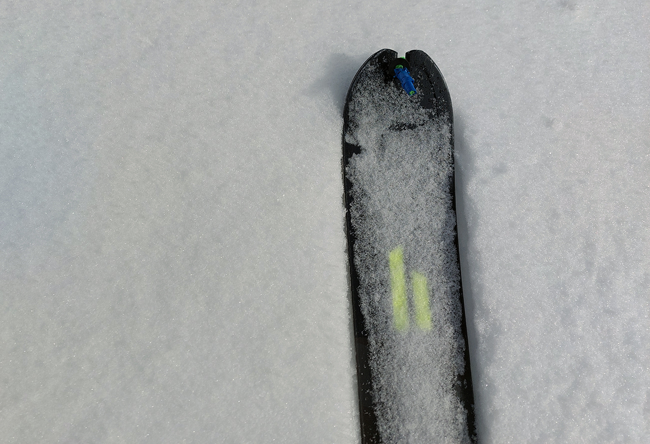 Tak hybaj nazad, a ozaj sme si po chvíli užili aj krátku síce, ale príjemnú lyžovačku popri žltej značke na dno doliny. Stále tvrdo a hladko, na tom pár cenťákov iskrivého, premrznutého páperia.